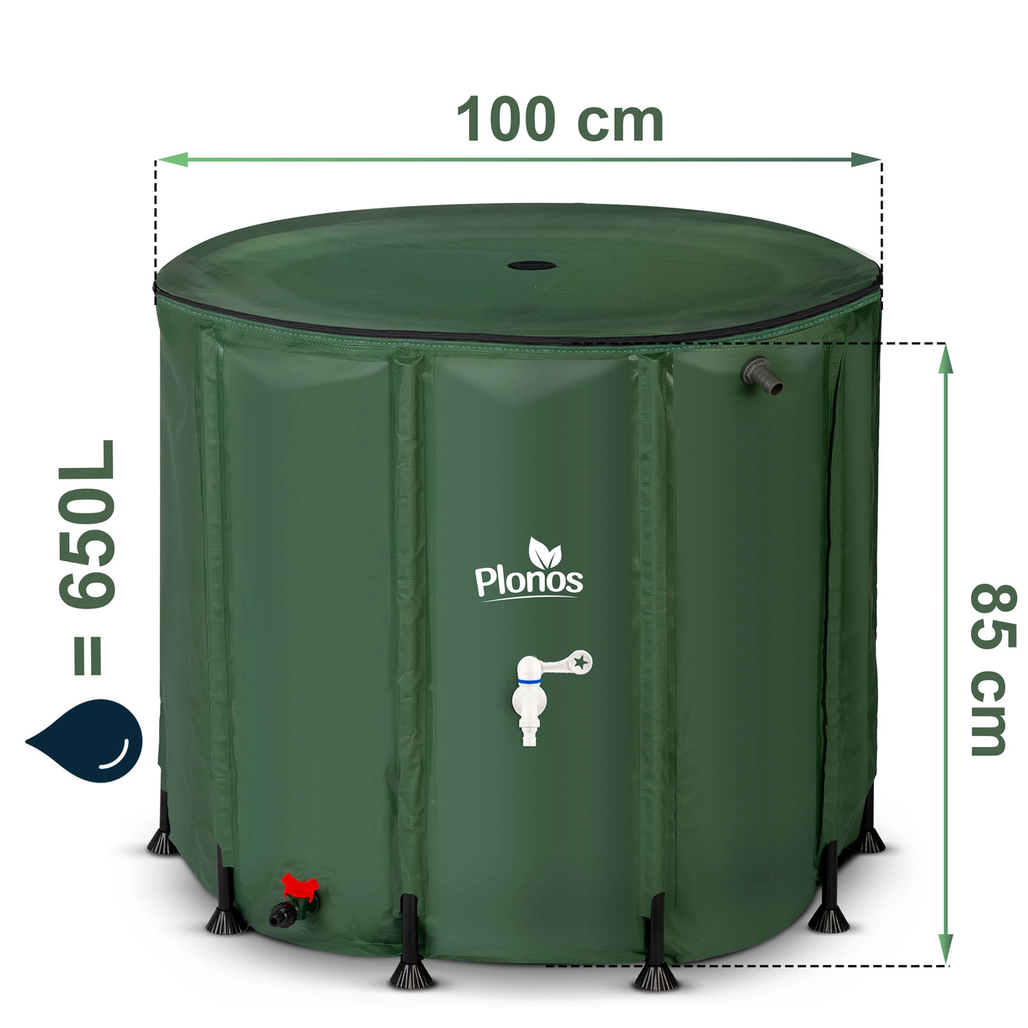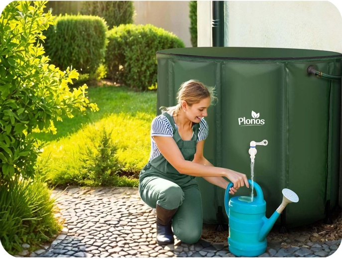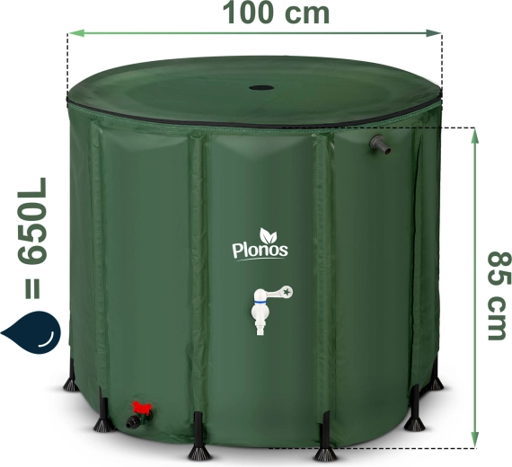 Bewaar gratis opgevangen regenwater voor tuin, kas en gazon. De opvouwbare regenton Plonos 650 l biedt een grote capaciteit, eenvoudige dosering via de frontkraan en snel leeglaten dankzij de onderste aftap. Door de aansluiting op de regenpijp en de bovenste inlaat met zeef blijft het water schoner, zonder bladeren en vuil.