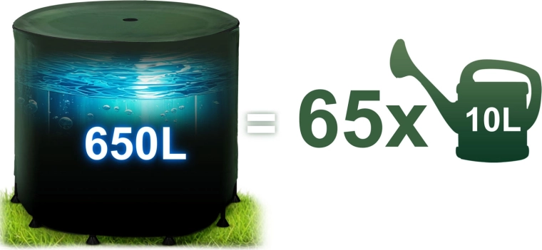 - 65 volle 10 l-gieters uit één reservoir – comfortabel bewateren zonder heen en weer te lopen naar de kraan.