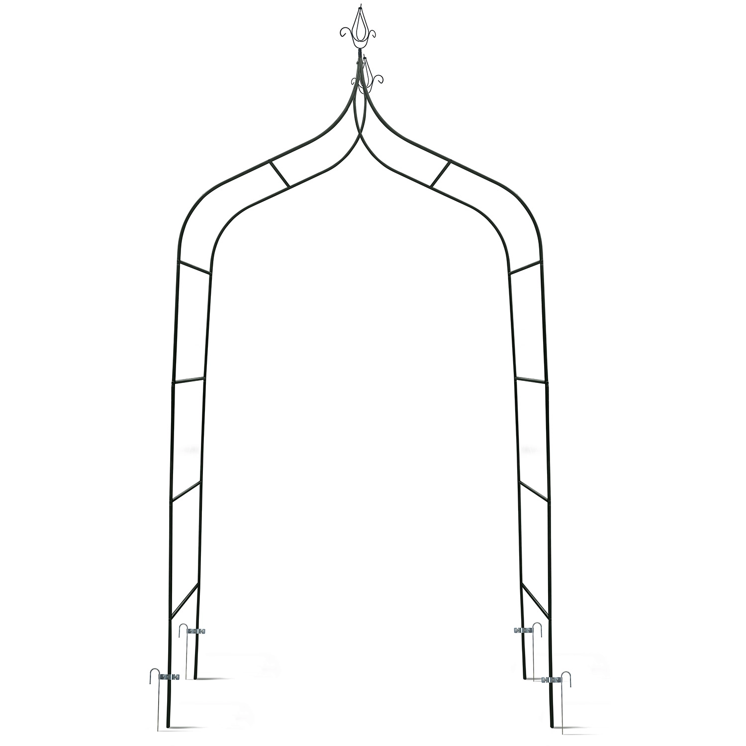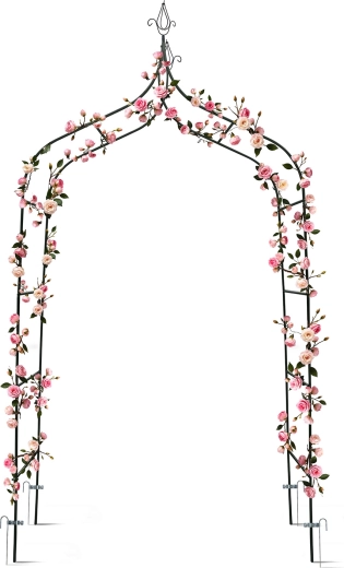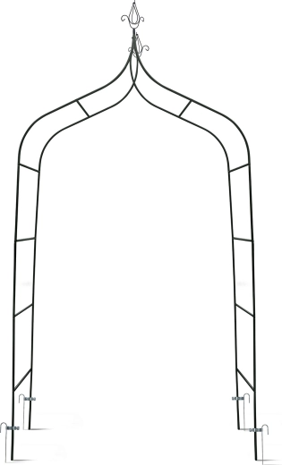 De boog is gemaakt voor rozen, klimop of druiven en vormt een natuurlijke groene poort of tunnel.
