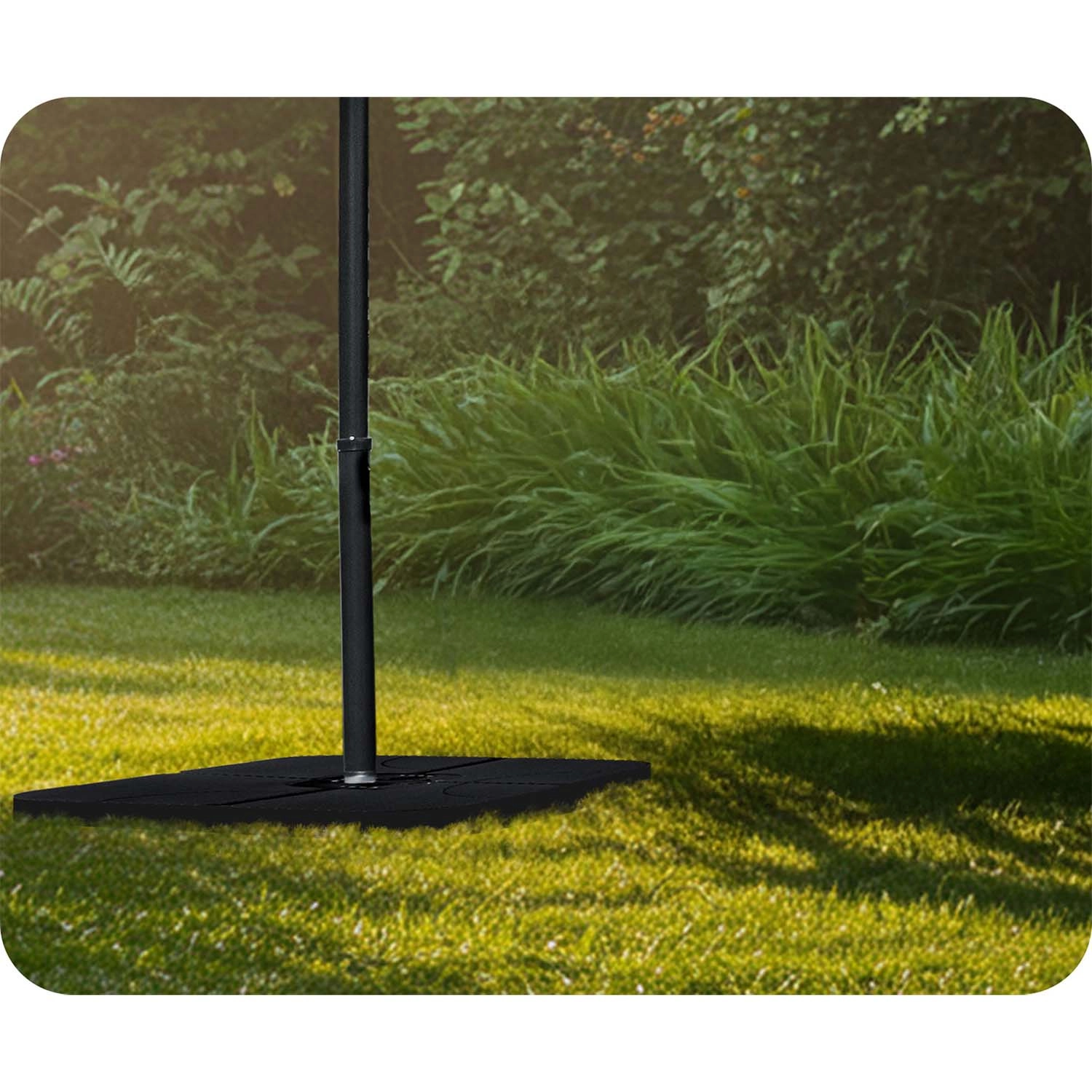 Vier vierkante segmenten omsluiten de kruisvoet en vormen een stabiel gewicht dat omvallen van de parasol voorkomt, zelfs bij wind.