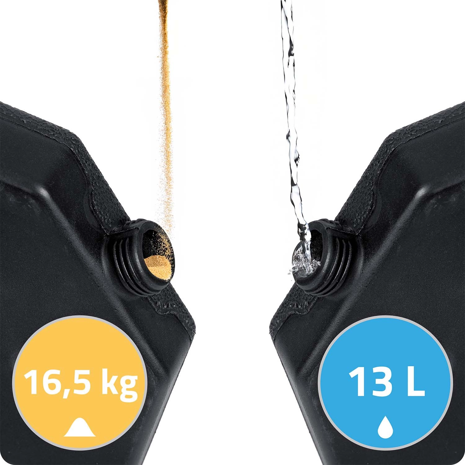 - Variabel gewicht: tot ca. 4 × 16,5 kg zand of 4 × 13 l water.