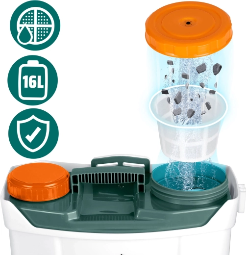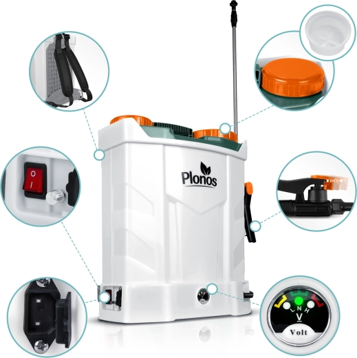 De accu-sproeier PLONOS PL-602 is de ideale keuze voor efficiënte bescherming van planten tegen plagen en ziekten én voor regelmatig bewateren. Het grote 16-liter reservoir, de stille werking en de krachtige 12 V / 8 Ah accu zorgen voor een gelijkmatige applicatie tot wel 3–4 uur. De robuuste behuizing van chemisch bestendig PE en de CE-certificering garanderen een lange levensduur en veilig gebruik.