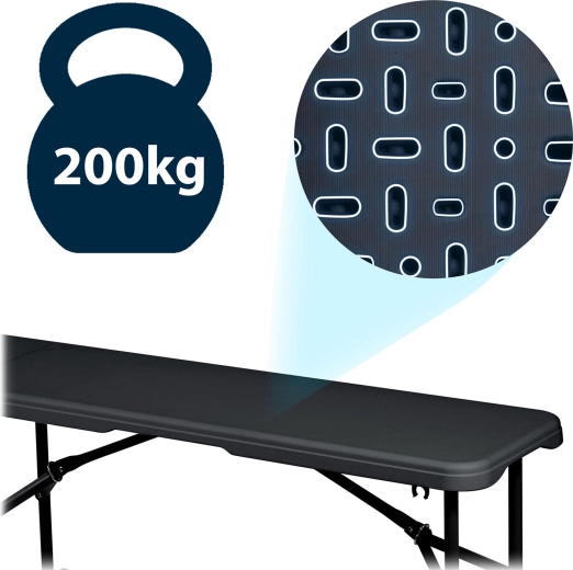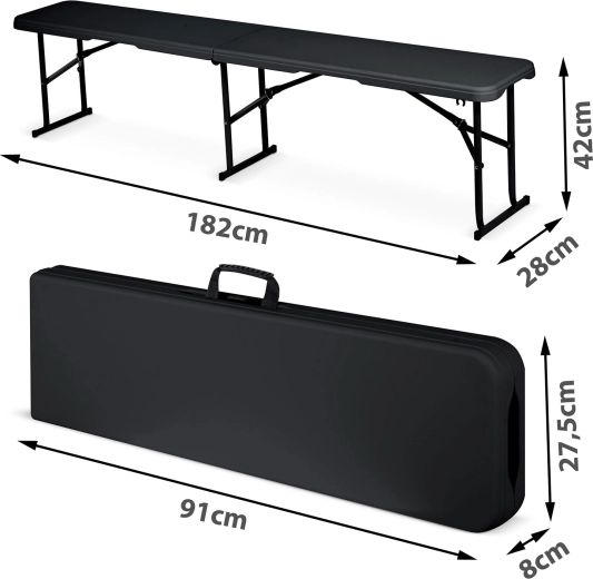 Praktische opklapbare bank voor tuin, events en balkon – stabiele en ergonomische constructie, stalen frame met poedercoating tegen corrosie, waterbestendig en eenvoudig te reinigen oppervlak van PE, comfortabele draaggreep en compacte afmetingen na het opklappen. Ideaal voor feestjes, picknicks en mobiel zitten.