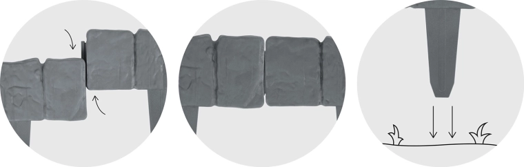 Geïntegreerde pinnen zorgen voor een stevige bevestiging binnen enkele minuten. De afzonderlijke delen klik je eenvoudig aan elkaar en steek je in de grond.