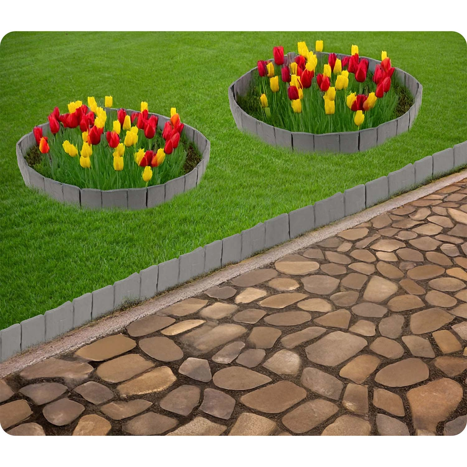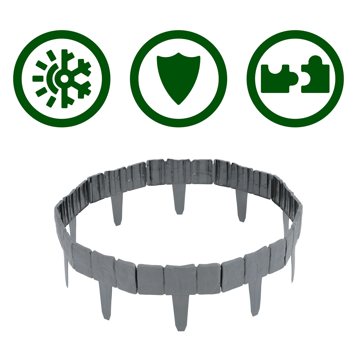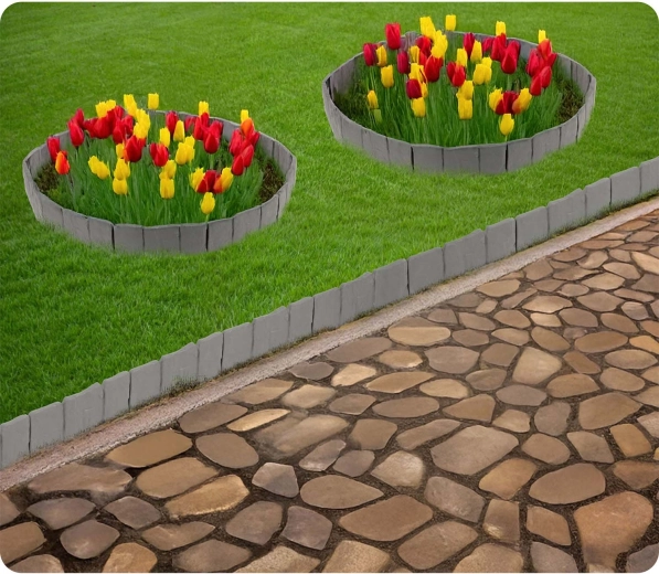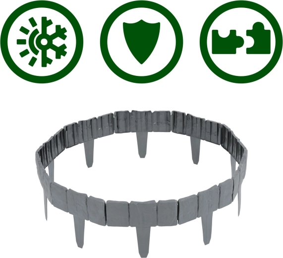 Het PP-materiaal is ontworpen voor buitengebruik: bestand tegen UV-straling, vorst en regen, het degradeert niet en behoudt zijn vorm. Bovendien voorkomt het vermenging van aarde, steentjes en schors met het gazon en helpt het de randen van bloembedden schoon en representatief te houden.