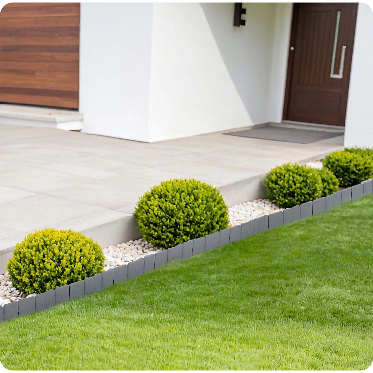 De rand voorkomt effectief dat schors en steentjes op het gazon terechtkomen en houdt de tuin het hele jaar door netjes.