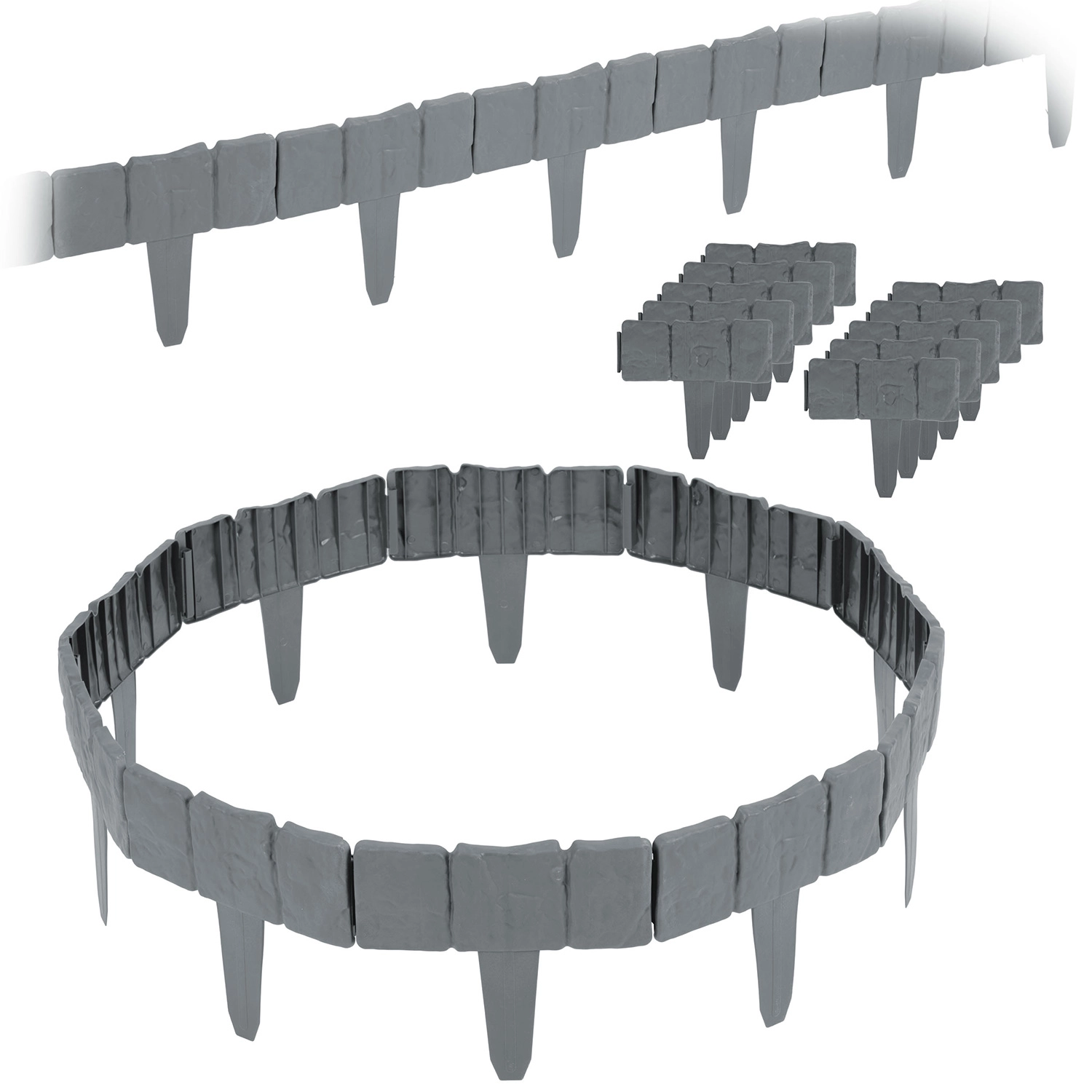 De koppelbare constructie past zich aan rechte lijnen en bogen aan. Ideaal voor randen rond bomen, bloembedden of paden.