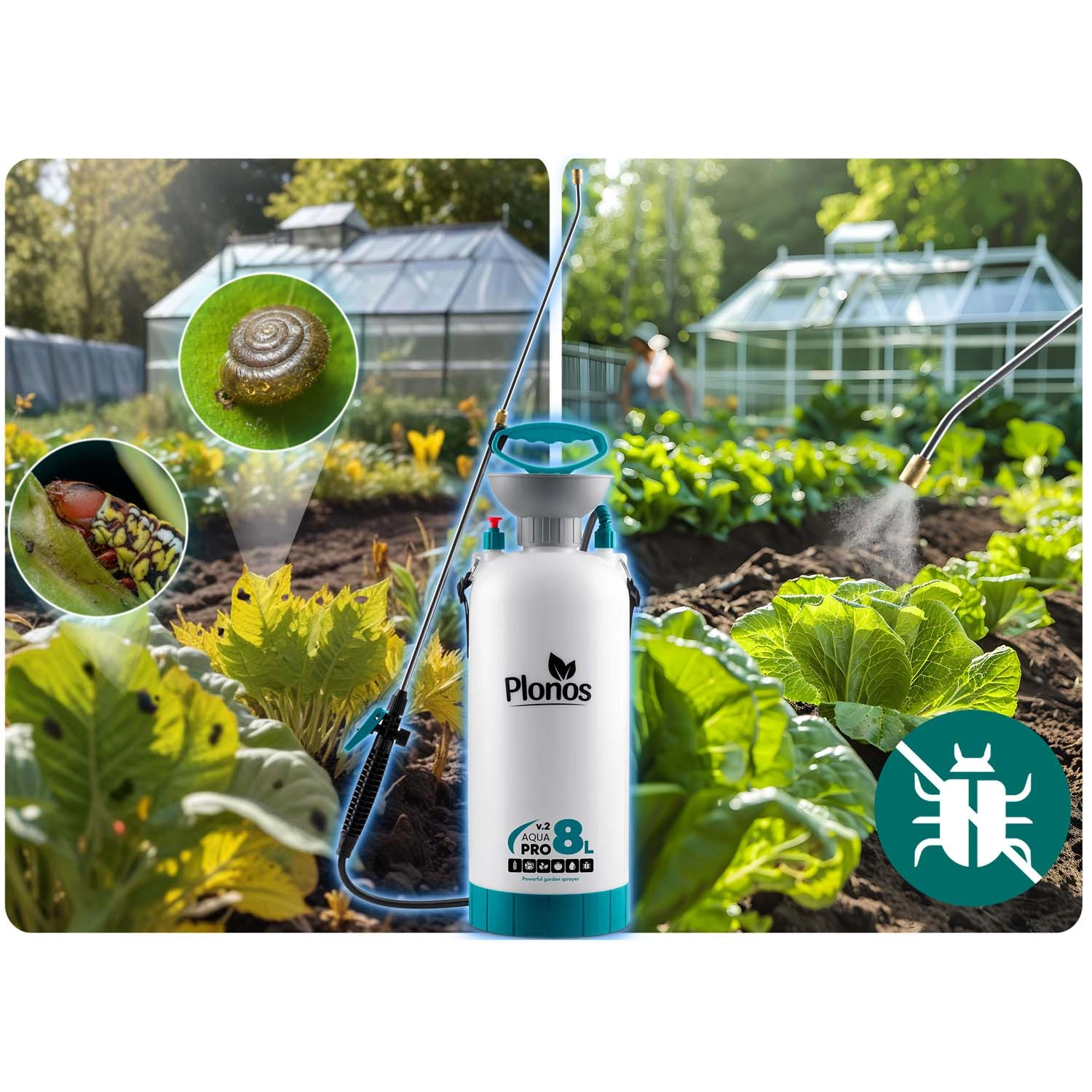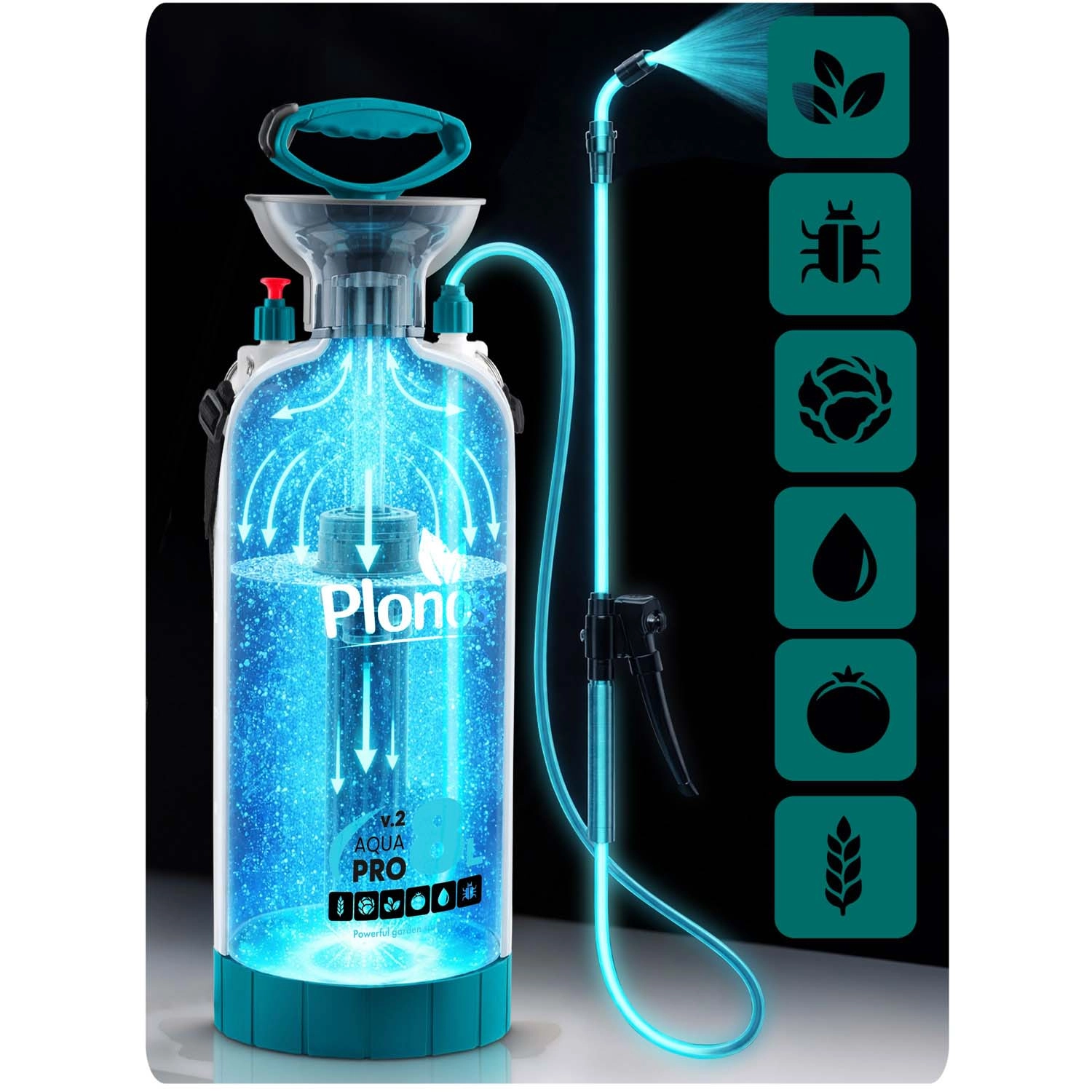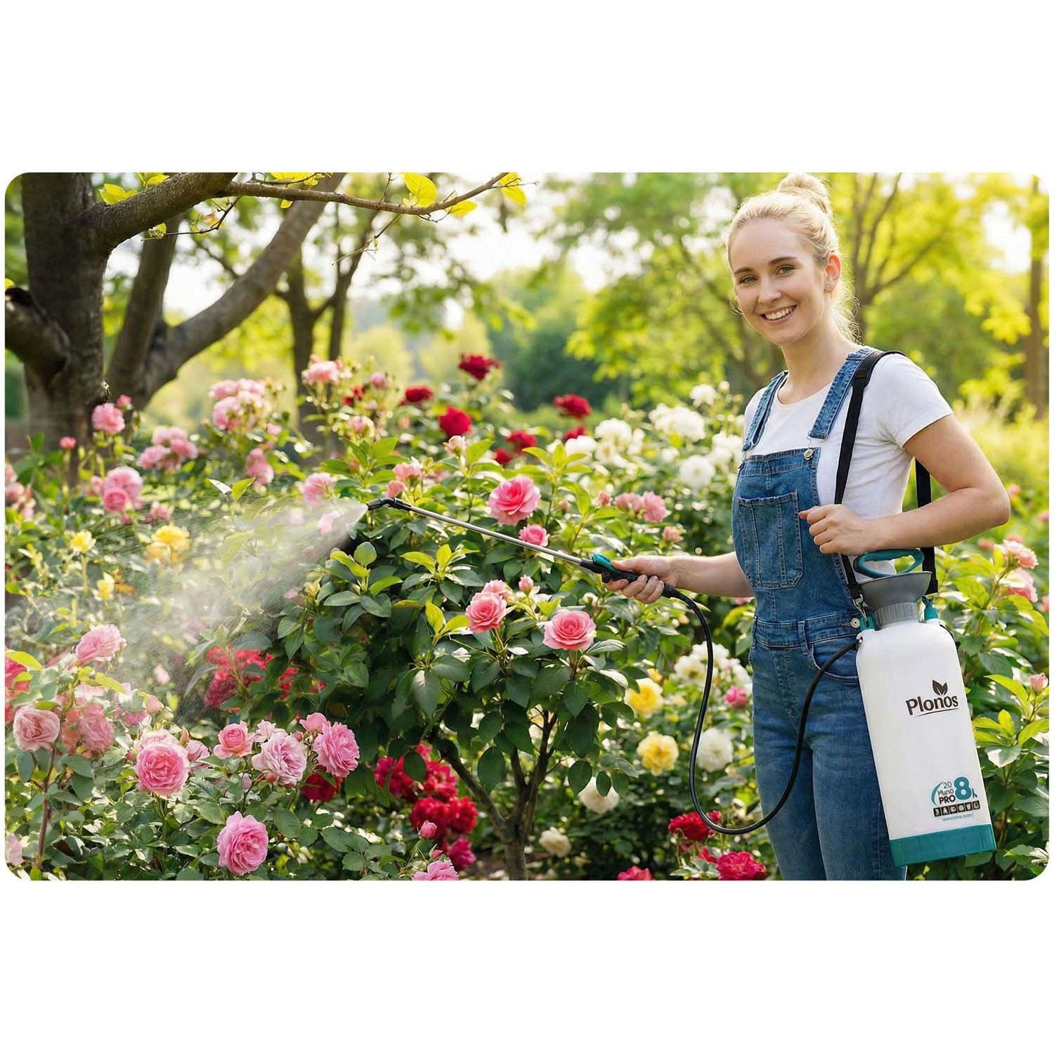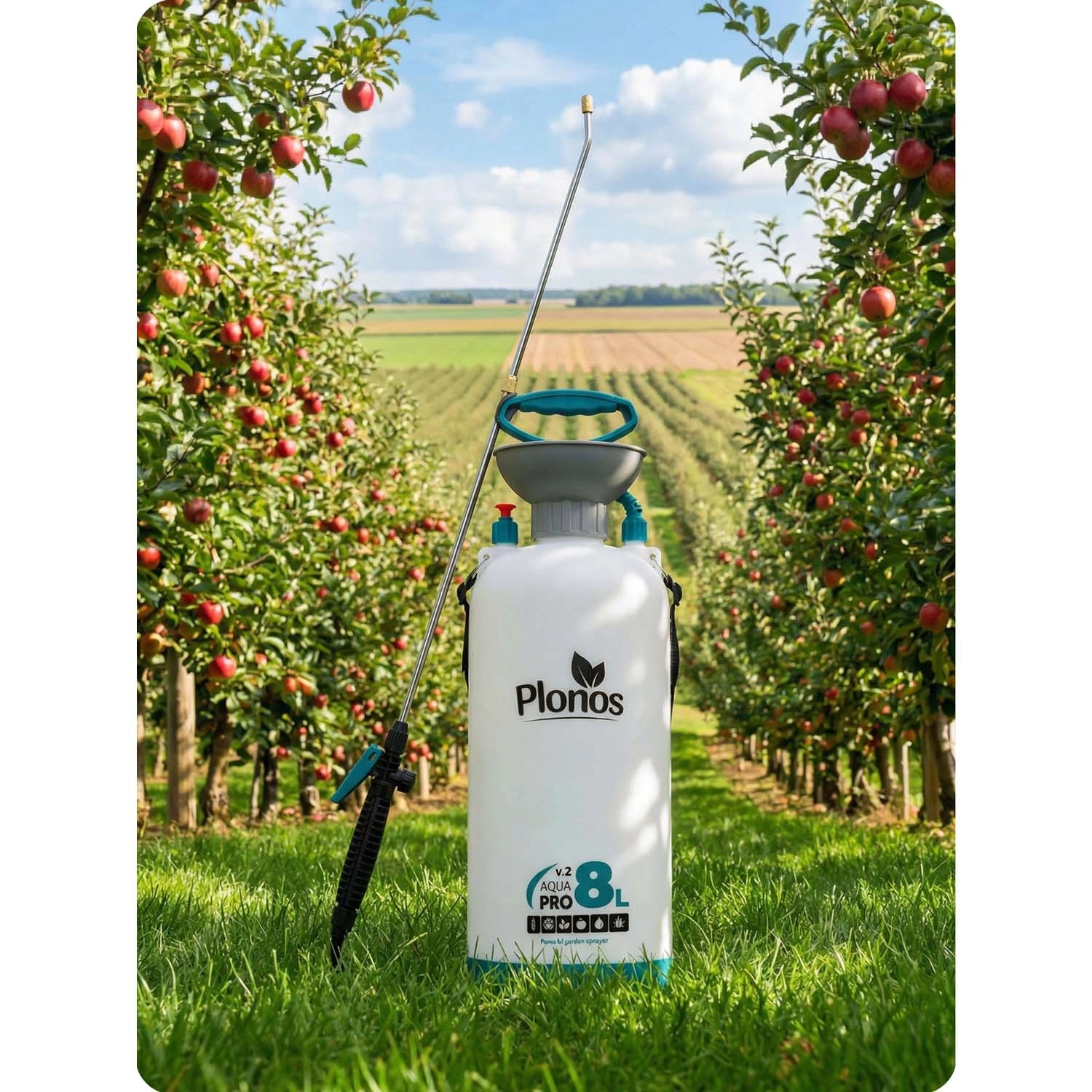 De Plonos 8 l drukspuit is een betrouwbare hulp voor dagelijks tuinieren. Dankzij hoogwaardige materialen – roestvrij staal, messing en duurzaam PE – is hij bestand tegen chemische middelen en langdurig gebruik. De geregelde druk van 2,76 bar verdeelt de vloeistof gelijkmatig en garandeert precieze resultaten bij het besproeien van bloemen, groenten, struiken en bomen.