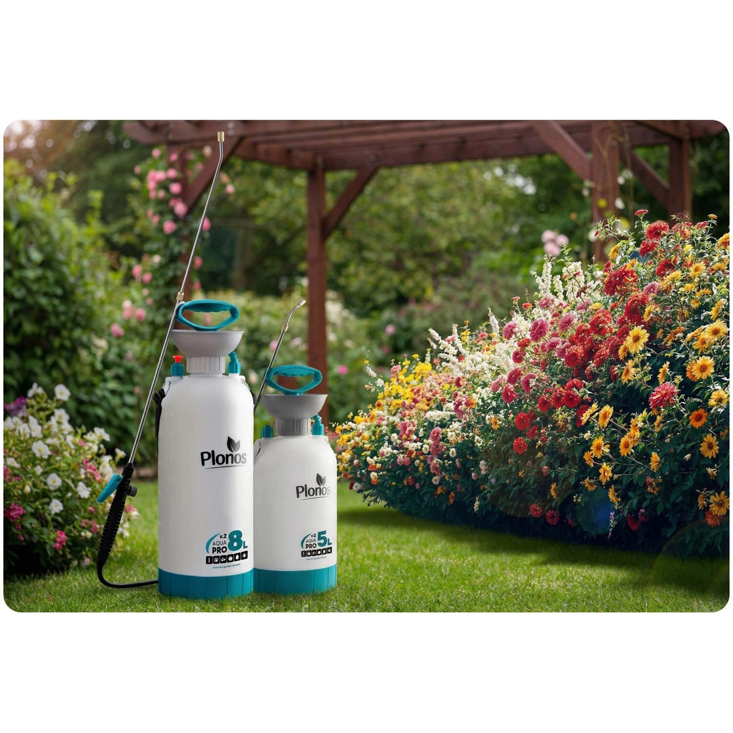 De Plonos-serie biedt drukspuiten met een duidelijke schaalverdeling, robuuste pomp en metalen lans. Kies de capaciteit passend bij de werkzaamheden in de tuin.