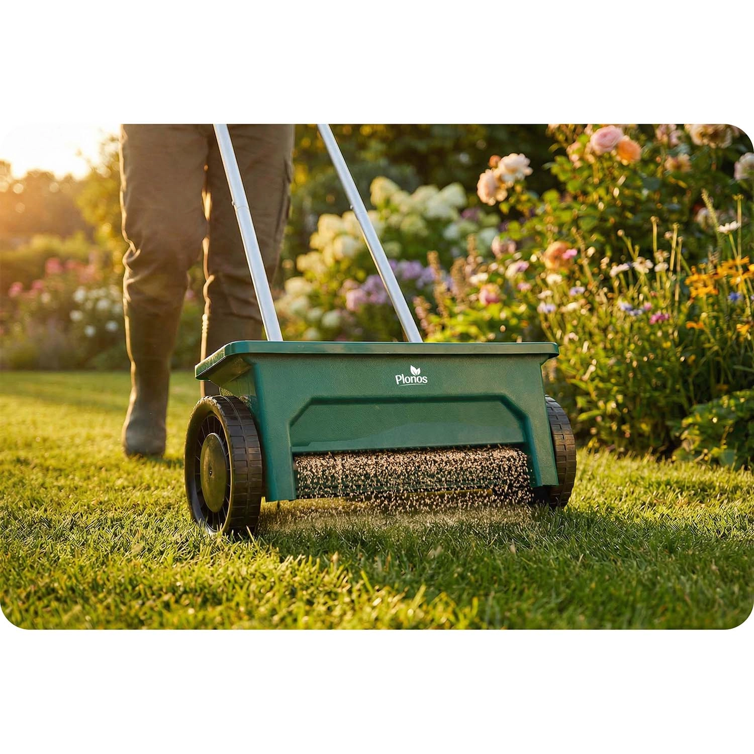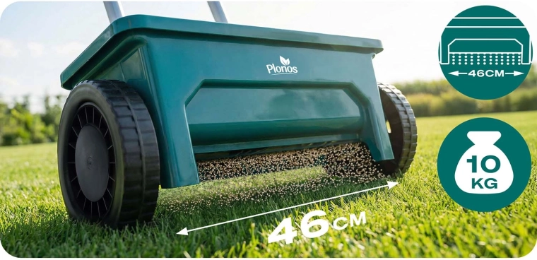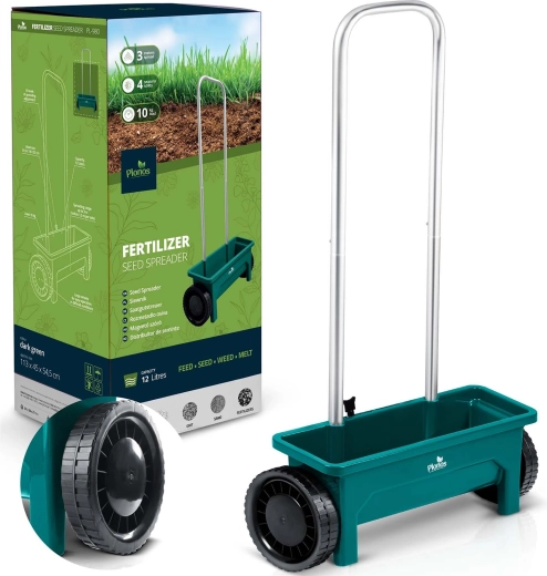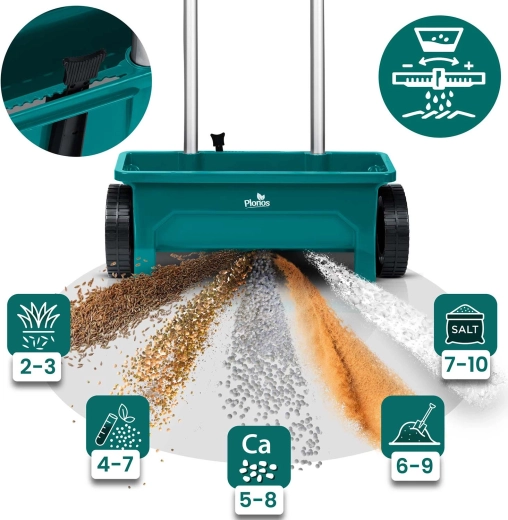 De PLONOS 12 l strooier is een betrouwbare hulp voor gazononderhoud en het strooien van paden. Van lente tot winter doseert hij moeiteloos graszaad, meststoffen, granulaat, zand en strooizout. De instelbare doorstroming in 10 stappen maakt het mogelijk de hoeveelheid en korrelgrootte precies af te stemmen voor een gelijkmatige bedekking.