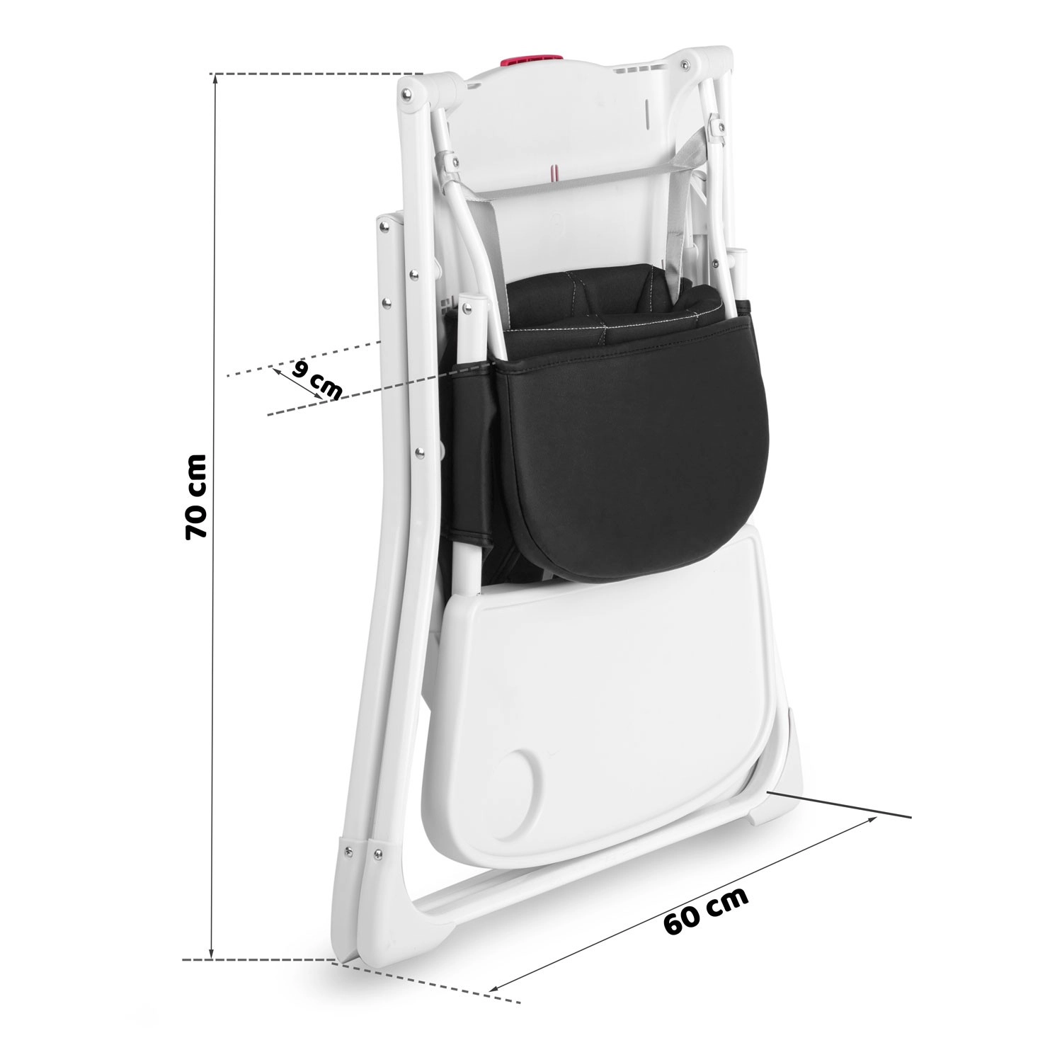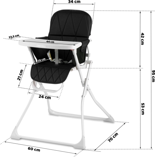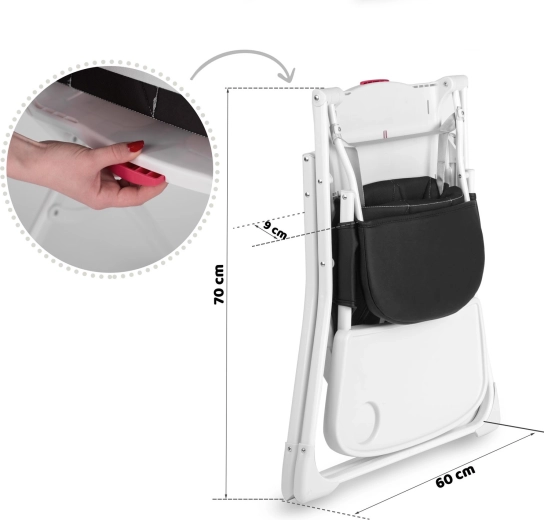Dankzij het snelle inklappen met één knop berg je het stoeltje in een handomdraai op in een kast of hoek. De 3-puntsriemen met verstelbare lengte houden je kind stabiel en veilig, terwijl de voetensteun een correcte zithouding en comfort ondersteunt tijdens eten en spelen.
