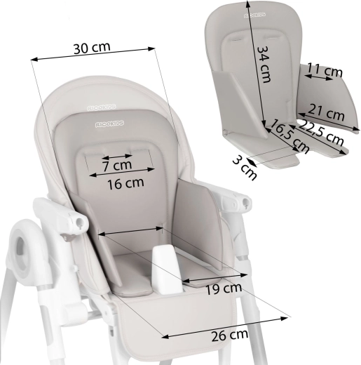 Het materiaal is makkelijk afwasbaar en absorbeert geen vloeistoffen – eventuele verontreinigingen veeg je eenvoudig weg met een vochtige doek. De inzet is ideaal afgestemd op de modellen Belo, Lindo en Tugo en is bovendien compatibel met veel andere kinderstoelen voor het voeden.