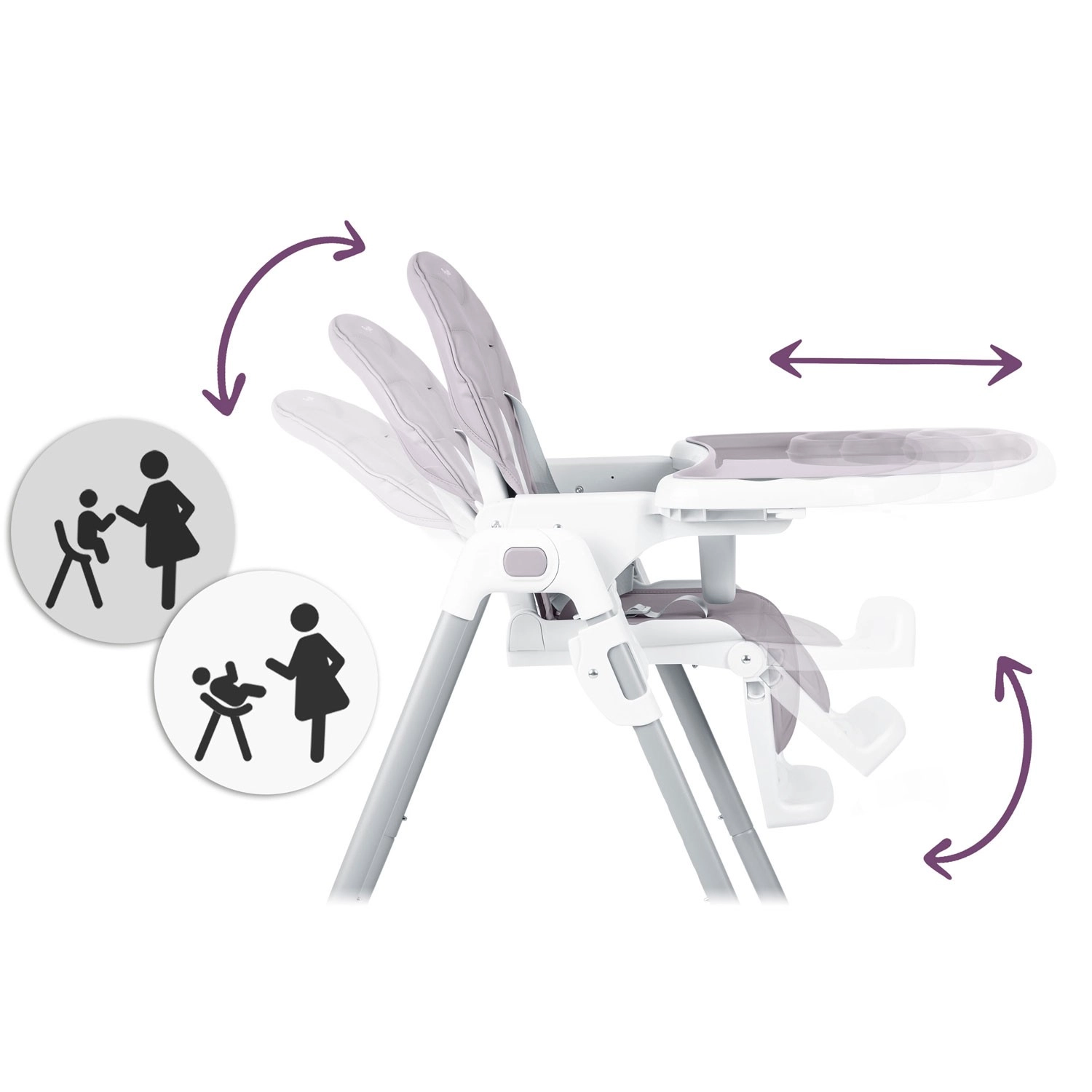 De stoel groeit mee met je kind – de verstelbare hoogte, het verstelbare blad en de verstelbare voetensteun zorgen voor ergonomisch zitten vanaf de eerste hapjes tot in de peuterleeftijd. Voldoet aan de strenge Europese norm EN 14988 en de 5-punts gordel garandeert veiligheid bij elk gebruik.