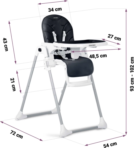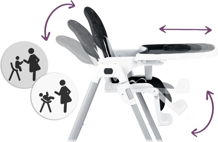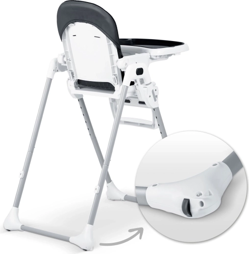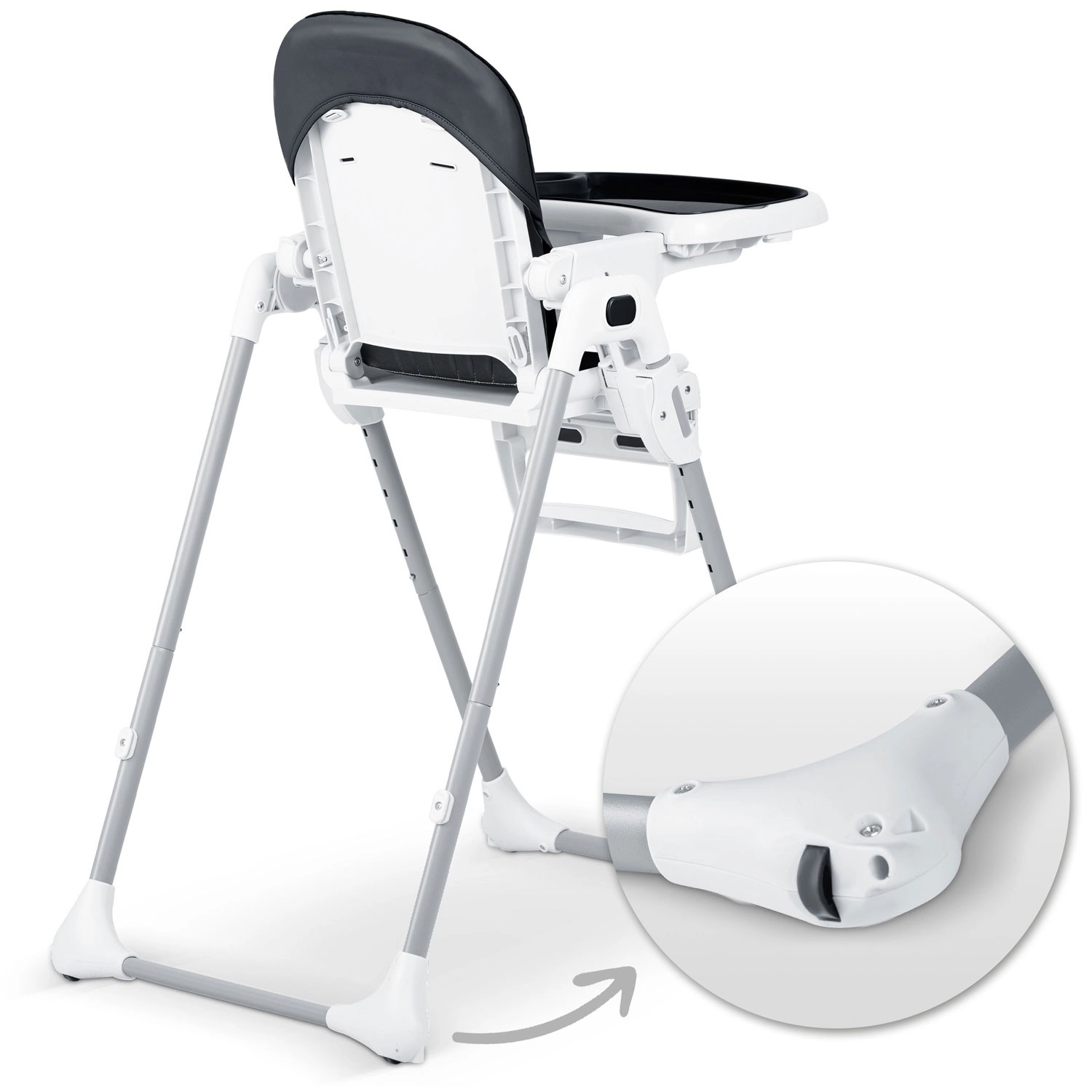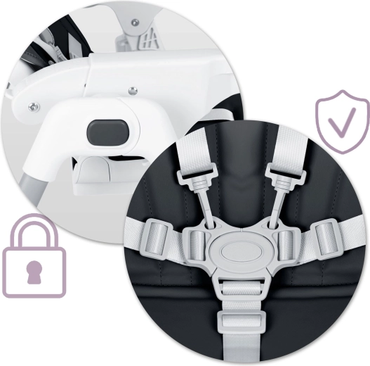 Dankzij het robuuste frame, de brede basis en de 5-punts gordels volgens norm EN 14988 zit je kind stevig en veilig tijdens eten en spelen.