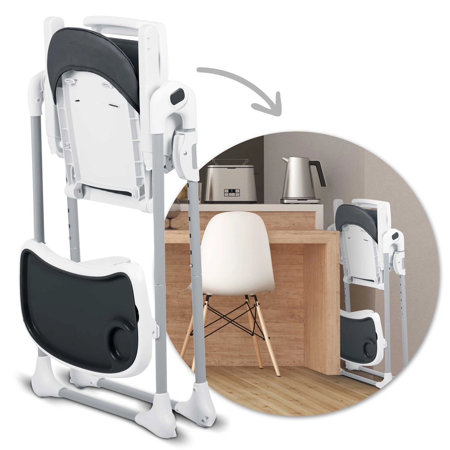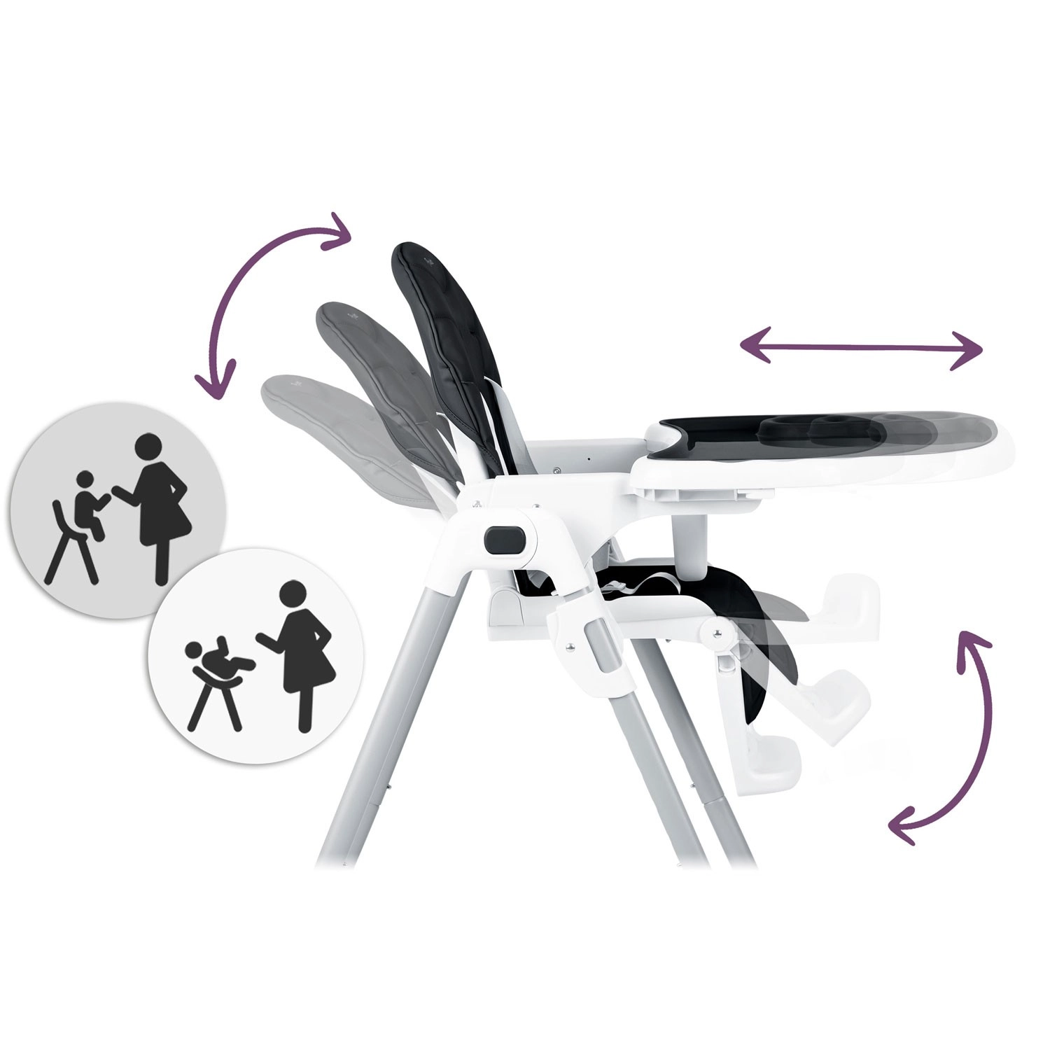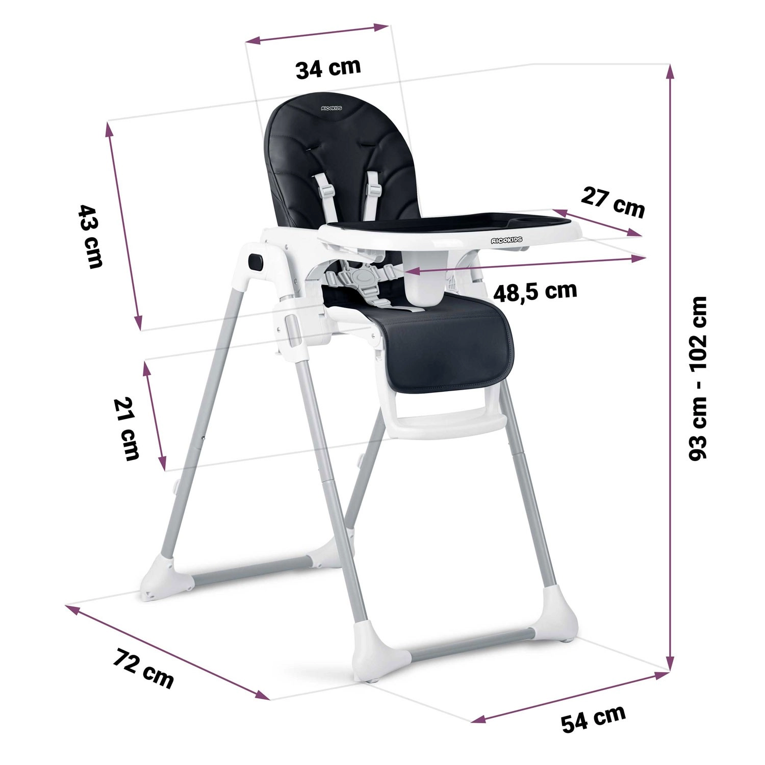 De moderne eetstoel RICOKIDS Tulo in elegant zwart biedt je kind comfort en veiligheid bij elke maaltijd. Hij heeft een verstelbare hoogte, een verstelbaar en afneembaar blad met opstaande rand, een verstelbare voetensteun en een 5-punts veiligheidsgordel. Hij vouwt eenvoudig compact op, heeft een niet-absorberende bekleding voor snel schoonmaken en dankzij de wieltjes verplaats je hem moeiteloos naar elke gewenste plek.