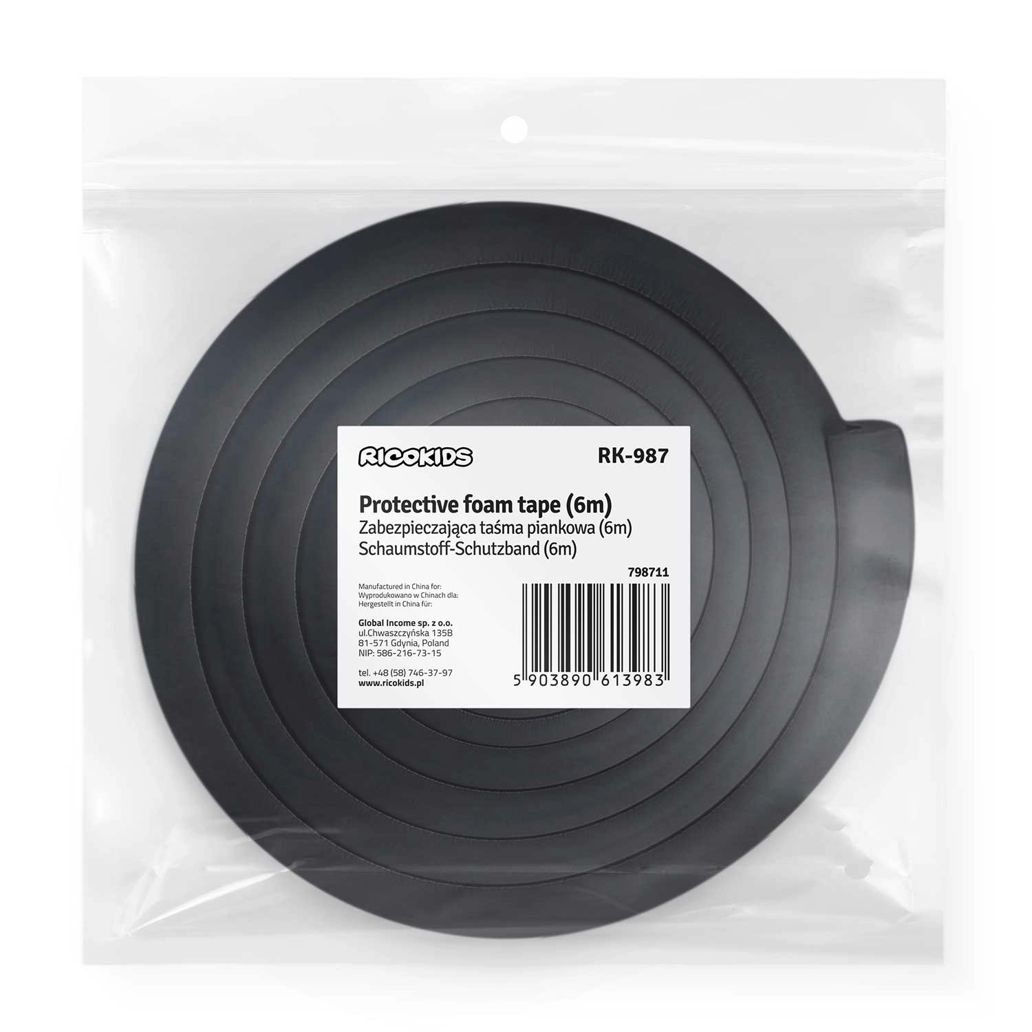 RICOKIDS beschermende schuimrandtape, zwart, 6 m
