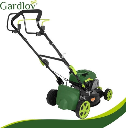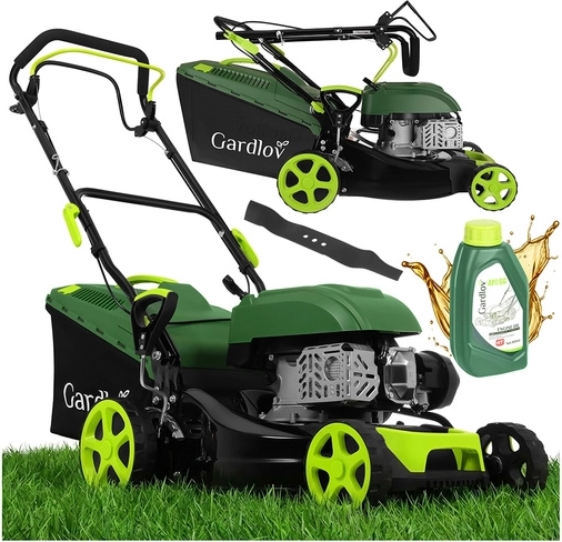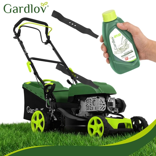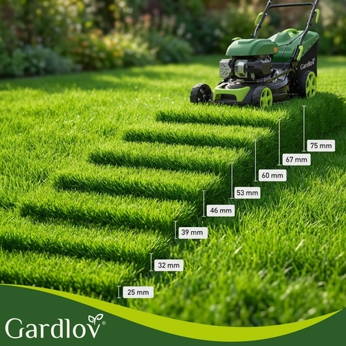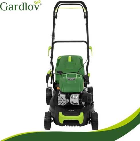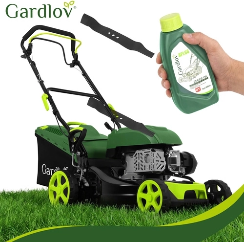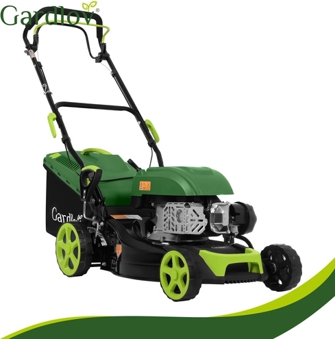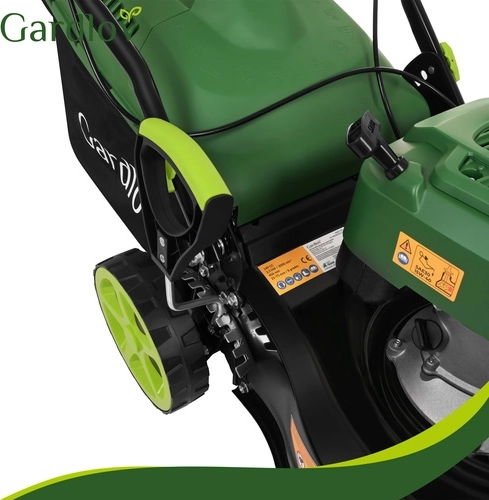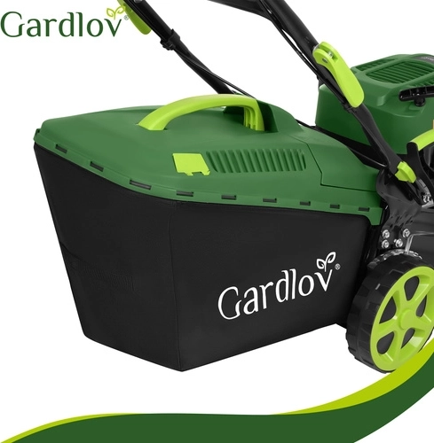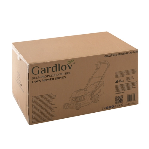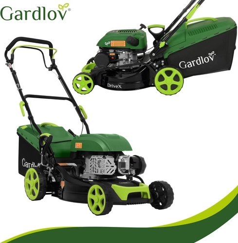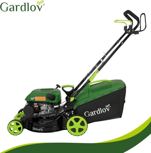 Krachtige benzinemaaier GARDLOV DriveX met wielaandrijving en een maaibreedte van 40,6 cm voor snel en gelijkmatig maaien, ook op grotere oppervlakken. De betrouwbare motor van 149 cm³ (2,3 kW) kan dicht gras aan, de grote opvangbak van 50 l bespaart tijd en de praktische aansluiting voor chassisreiniging vergemakkelijkt het schoonmaken na het werk. Dankzij 8 maaihoogtes (25–75 mm) en een verstelbare duwboom geniet je van comfort en een precies resultaat.