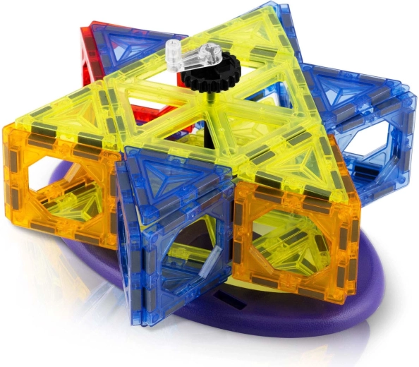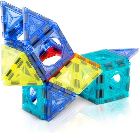 Kleurrijke, doorschijnende vormen klikken met magneten zo in elkaar. Kinderen bouwen snel stevige 3D-modellen en leren principes van geometrie en symmetrie.