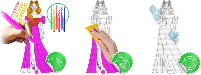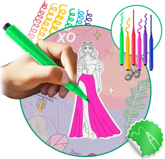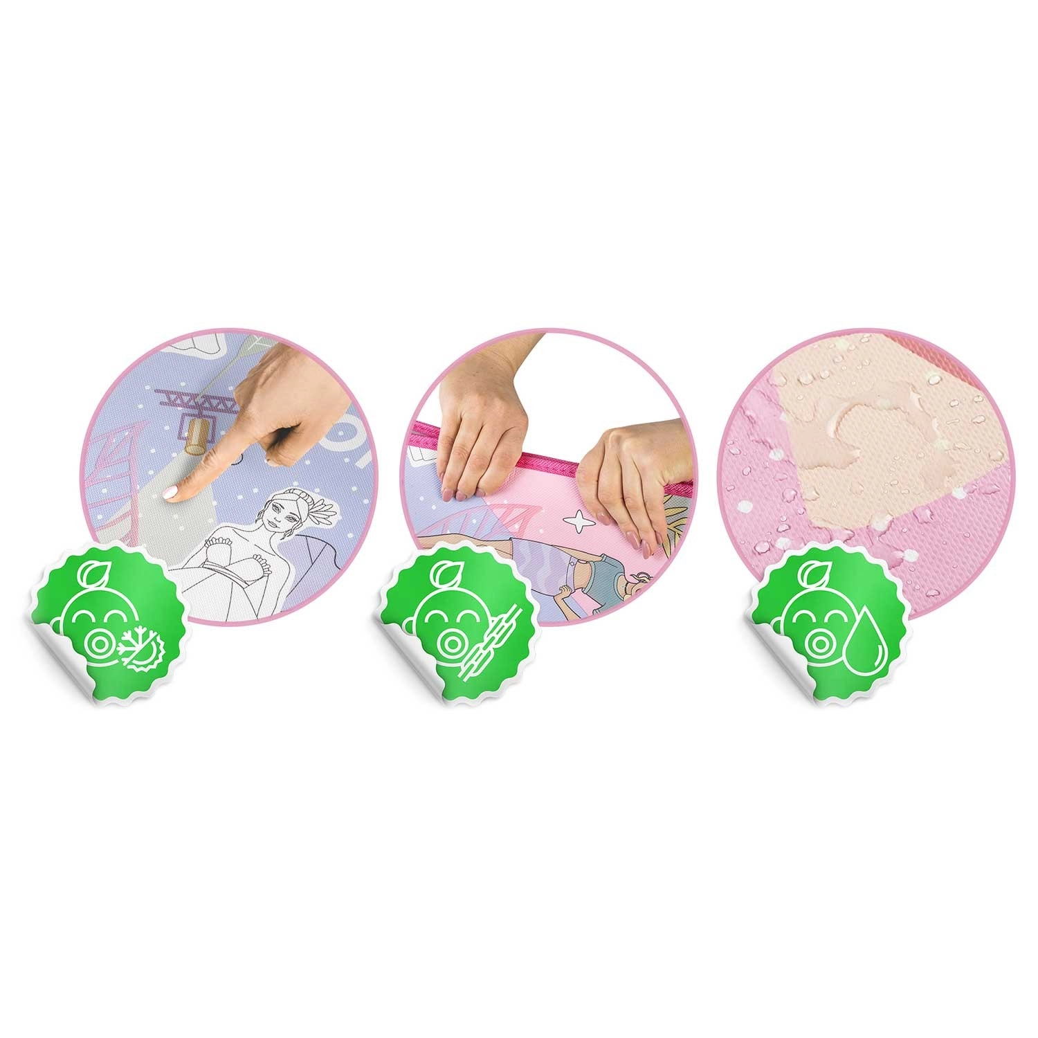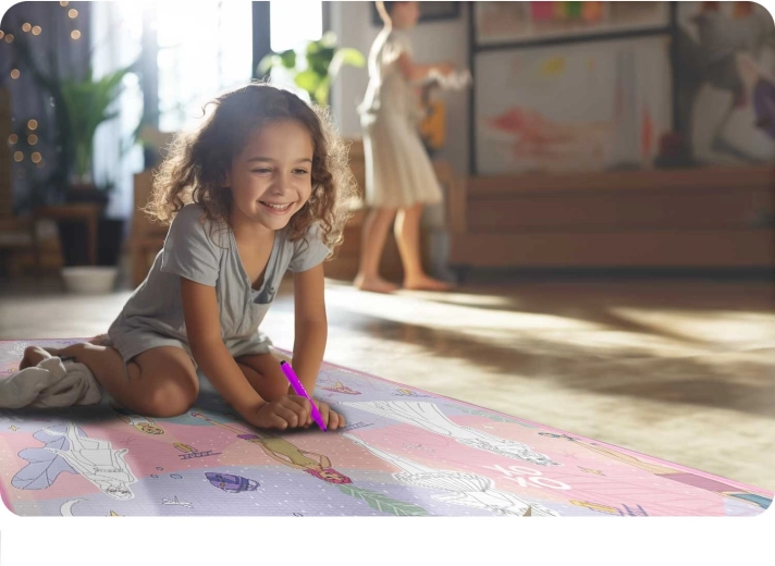 Creëer voor kinderen een creatieve hoek, thuis of buiten. De grootschalige kleurplaat-speelmat met Fashion-motief biedt een comfortabele, zachte ondergrond om te tekenen, spelen en de eerste kruipmomenten. Het speciale oppervlak droogt snel, de kleuren blijven op de mat en maken geen handen of omgeving vuil. Na het spelen veeg je alles eenvoudig weg met een vochtige doek, zonder chemie, en het is klaar voor de volgende creatieve ronde.