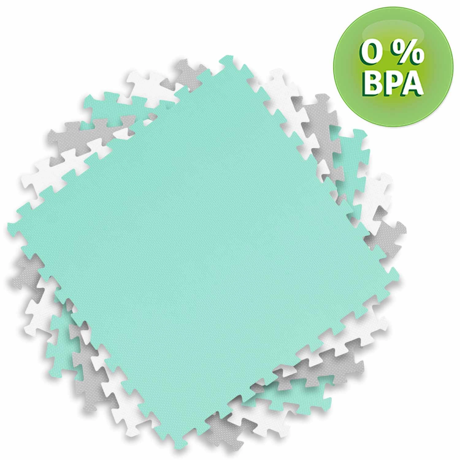 Grote foam puzzelmat RICOKIDS 180 × 180 cm, 9 delen, grijs-turkoois