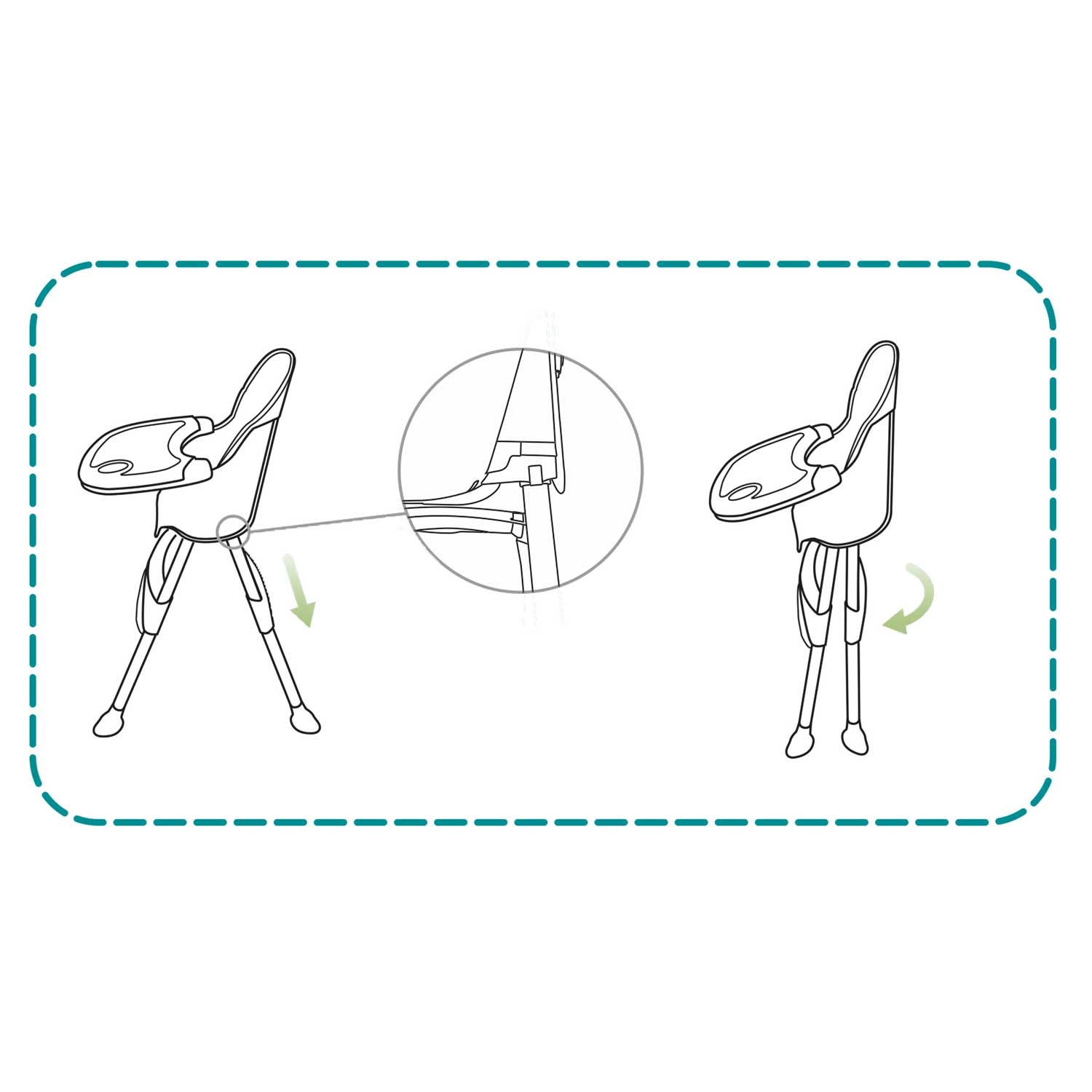 5-punts veiligheidsgordel, antislip voetjes en een constructie volgens norm EN 14988 beschermen je kind tijdens eten en spelen.