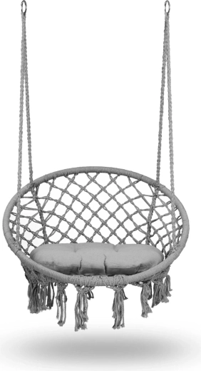De hangstoel in modern boho-design brengt een combinatie van comfort en stijl in elke binnen- en buitenruimte. De ergonomisch gevormde zit met ruime diameter en hogere rugleuning ondersteunt het lichaam, terwijl het zachte, bijpassende kussen het comfort verhoogt tijdens lezen, relaxen en zacht schommelen.
