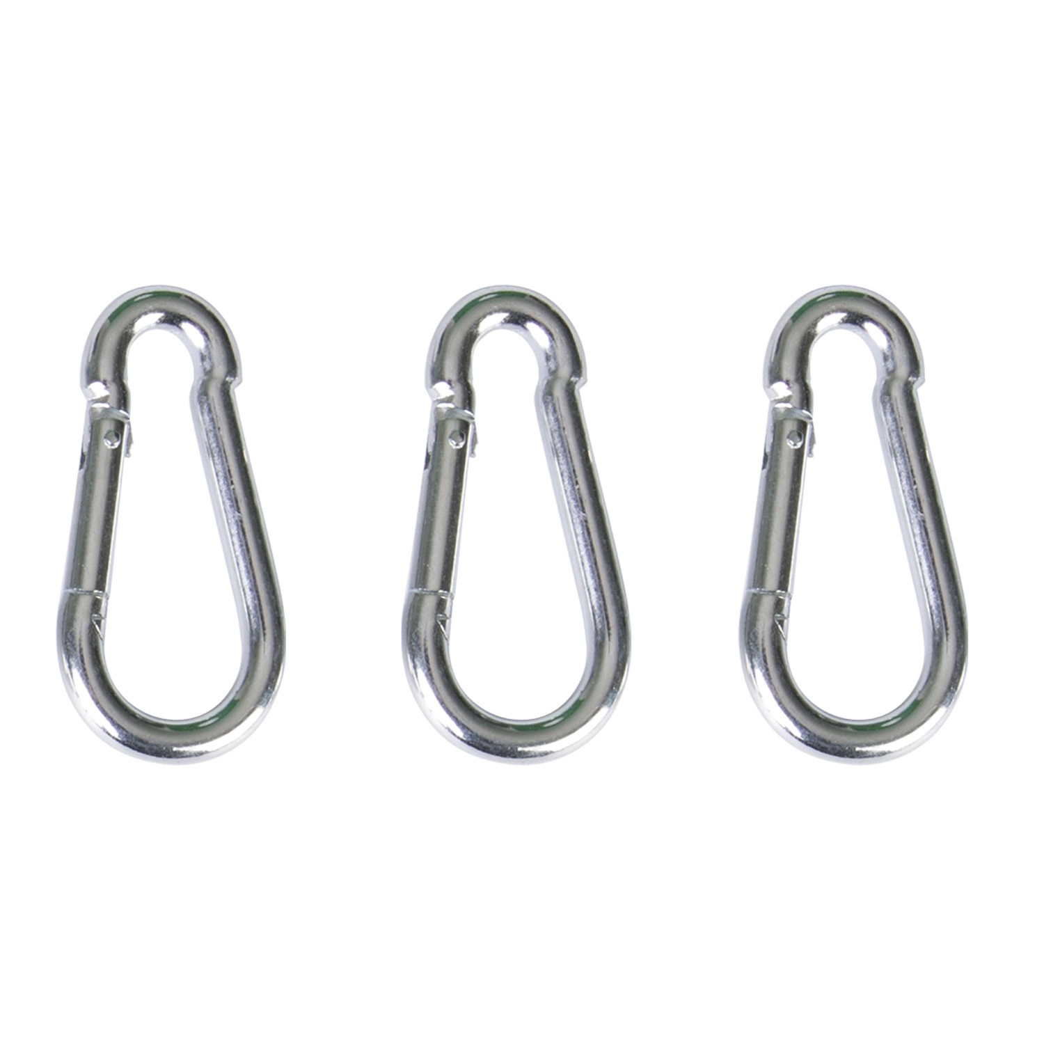 Drie robuuste karabiners met zelfsluitende veer maken het ophangen en wisselen van accessoires eenvoudig. Geschikt voor kettingen, ogen en touwen.