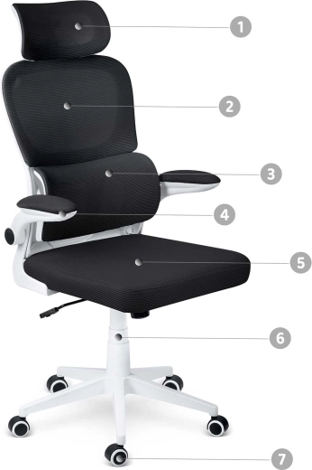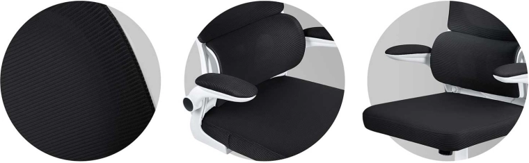 - Ademende materialen: mesh in het middendeel van de rugleuning voor betere ventilatie.