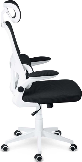 De ergonomische stoel SOFOTEL FORMAX in een elegant zwart-wit ontwerp combineert comfort, ademend vermogen en modern design. Biedt verstelbare zithoogte met behulp van de SoftUp gasveer, een schommelfunctie SoftSwing voor korte ontspanning, een verstelbare hoofdsteun en lendensteun voor gezond zitten. Stille rubberen wielen beschermen de vloer en de vijfarmige basis zorgt voor stabiliteit en soepele mobiliteit.