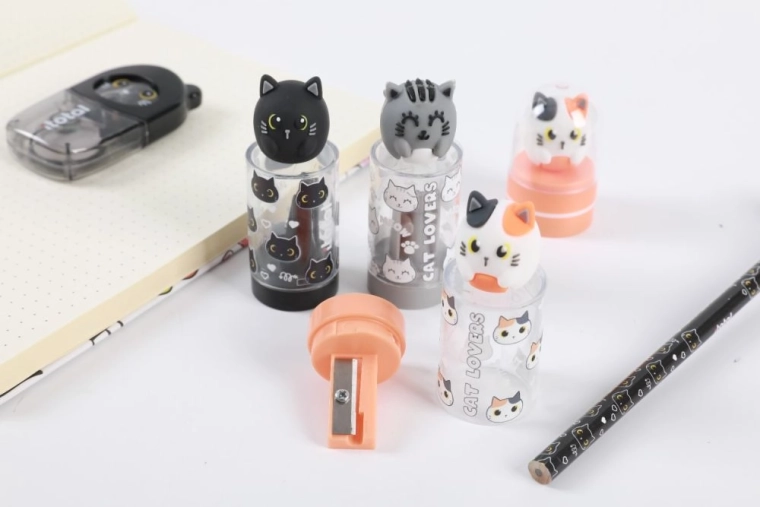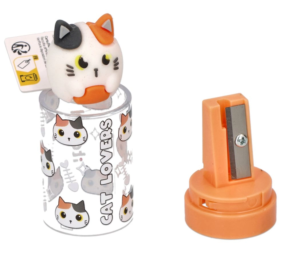 De lichte en duurzame constructie past moeiteloos in elke etui. Het metalen mes zorgt voor soepel en precies slijpen zonder het breken van de stift, terwijl het dekseltje met figuurtje dient als praktische afdekking.