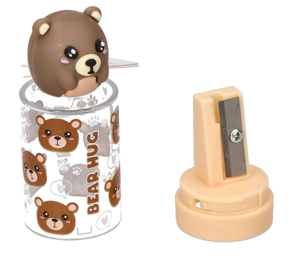 Maak van potloden slijpen een plezier. Deze puntenslijper met transparant opvangbakje vangt alle spaanders op, zodat je etui en werkplek schoon blijven. De schattige beertjes- en pandamotieven verrukken zowel kinderen als liefhebbers van speels design.