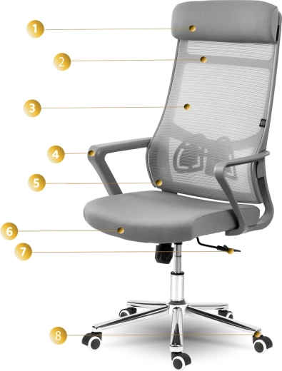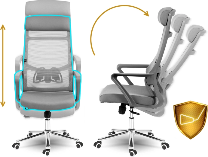 De microscreen zorgt voor luchtcirculatie en de gevormde lendensteun helpt de hele dag een gezonde houding te behouden.