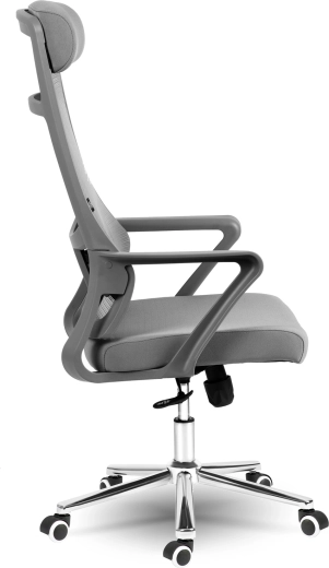 De ergonomische bureaustoel Sofotel Brema in elegant grijs combineert een ademende microscreen, comfortabele bekleding, traploze hoogteverstelling SoftUp en een kantelmechanisme SoftSwing voor comfort de hele dag. De stabiele metalen vijfster-voet, stille gerubberde wielen en geïntegreerde lendensteun ondersteunen een juiste zithouding bij werk en studie.