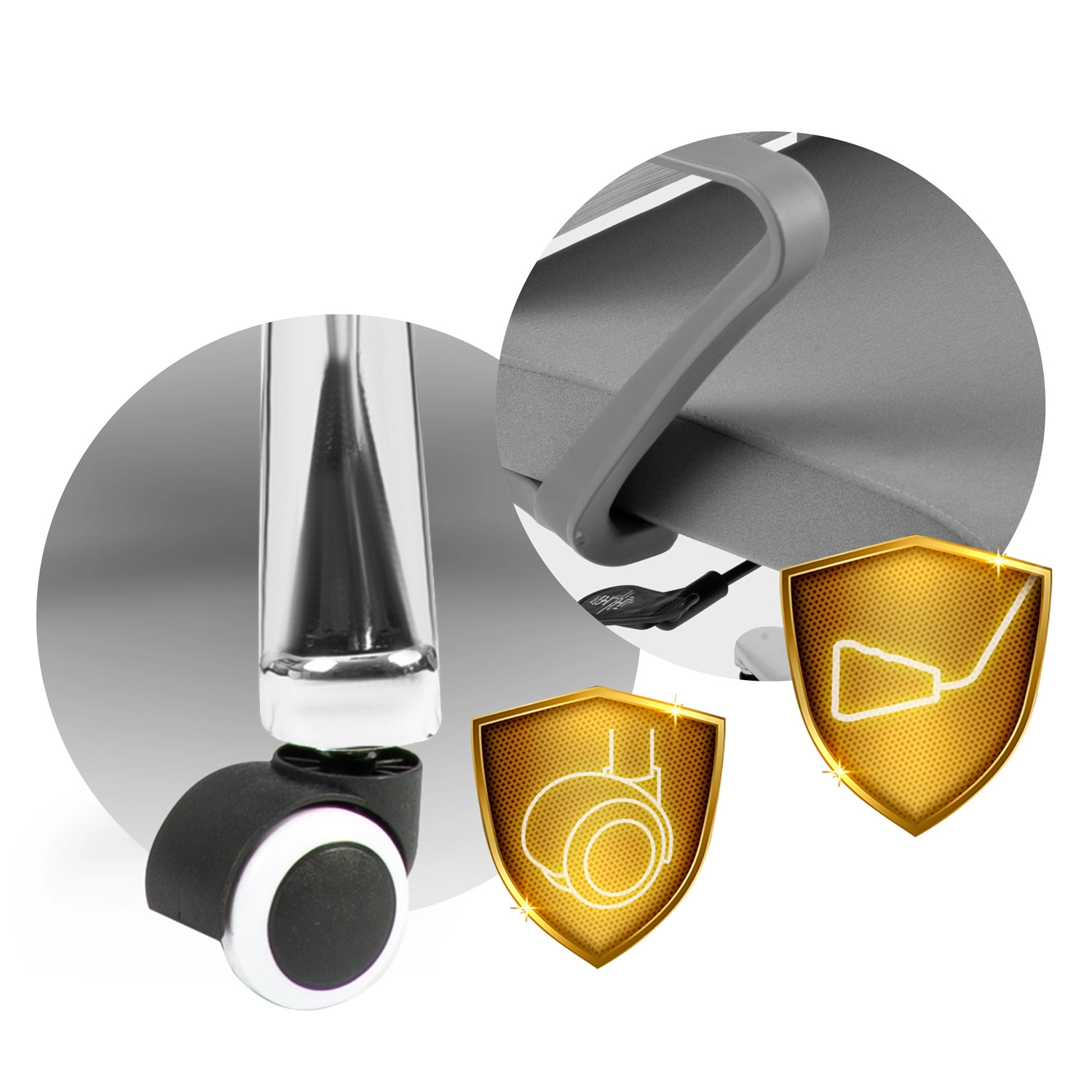 - Stille nylon-rubberen wielen – soepele beweging en bescherming van vloeren.