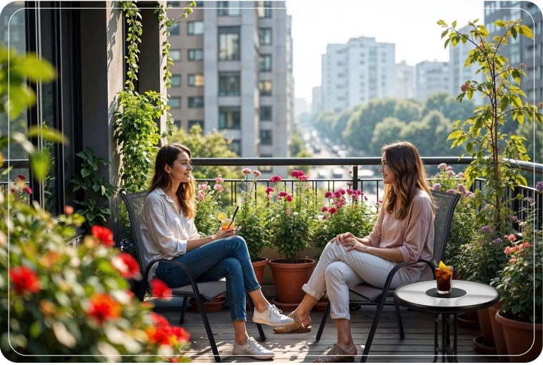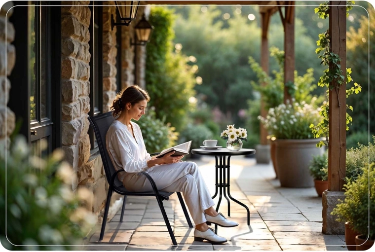 De stoelen zijn eenvoudig op elkaar te stapelen, wat het opruimen en seizoensopslag op balkon of onder de pergola vergemakkelijkt.
