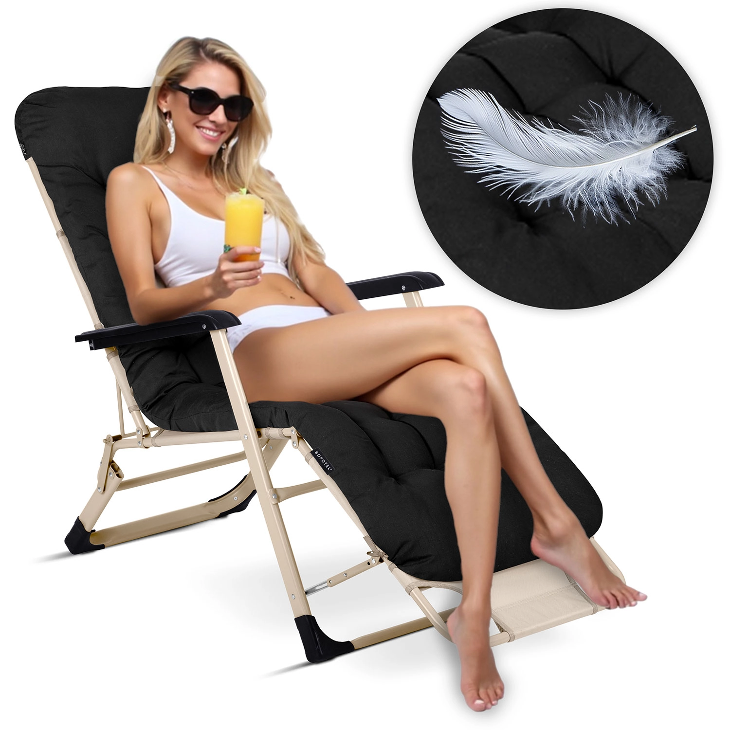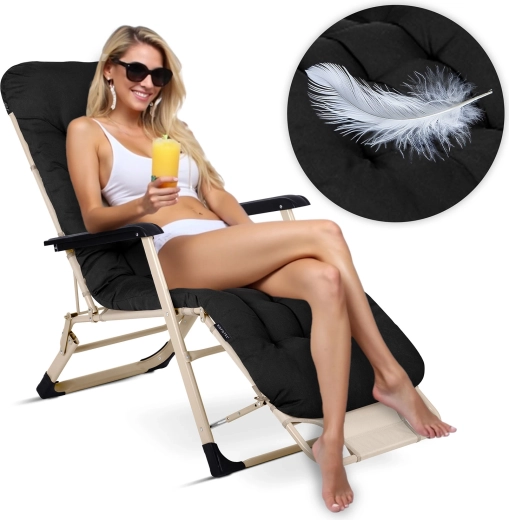 Geniet van maximale ontspanning, buiten én binnen, met de set van twee opvouwbare SOFOTEL ChillWell ligstoelen met dikke bekleding. Ze bieden een verstelbare rugleuning, volledig vlakke ligstand, een zachte afneembare hoofdkussen en duurzame Texline-materialen met UV-bescherming. Dankzij de opvouwbare constructie vervoert u ze eenvoudig in de kofferbak en bergt u ze op zonder veel ruimte in te nemen.
