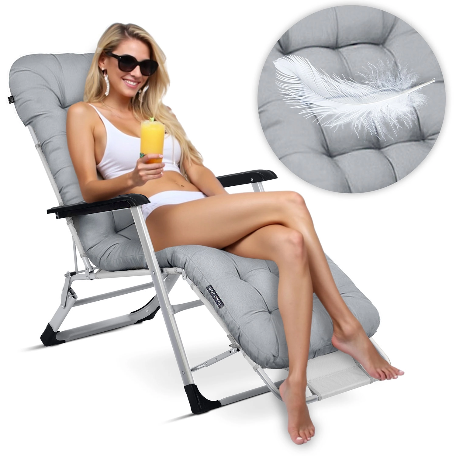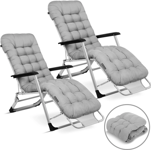 Opvouwbare tuinligstoel met kussen Sofotel ChillWell, set van 2 stuks, grijs