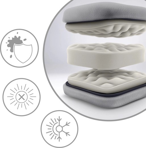 • Maximaal comfort: zacht, veerkrachtig kussen met hoofdkussen voor nekondersteuning.