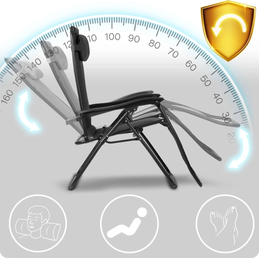 Vloeiende hoekverstelling met vergrendeling maakt een positie mogelijk waarbij de benen op hartniveau liggen. Dit verbetert de doorbloeding, ontlast de wervelkolom en laat het lichaam volledig ontspannen.