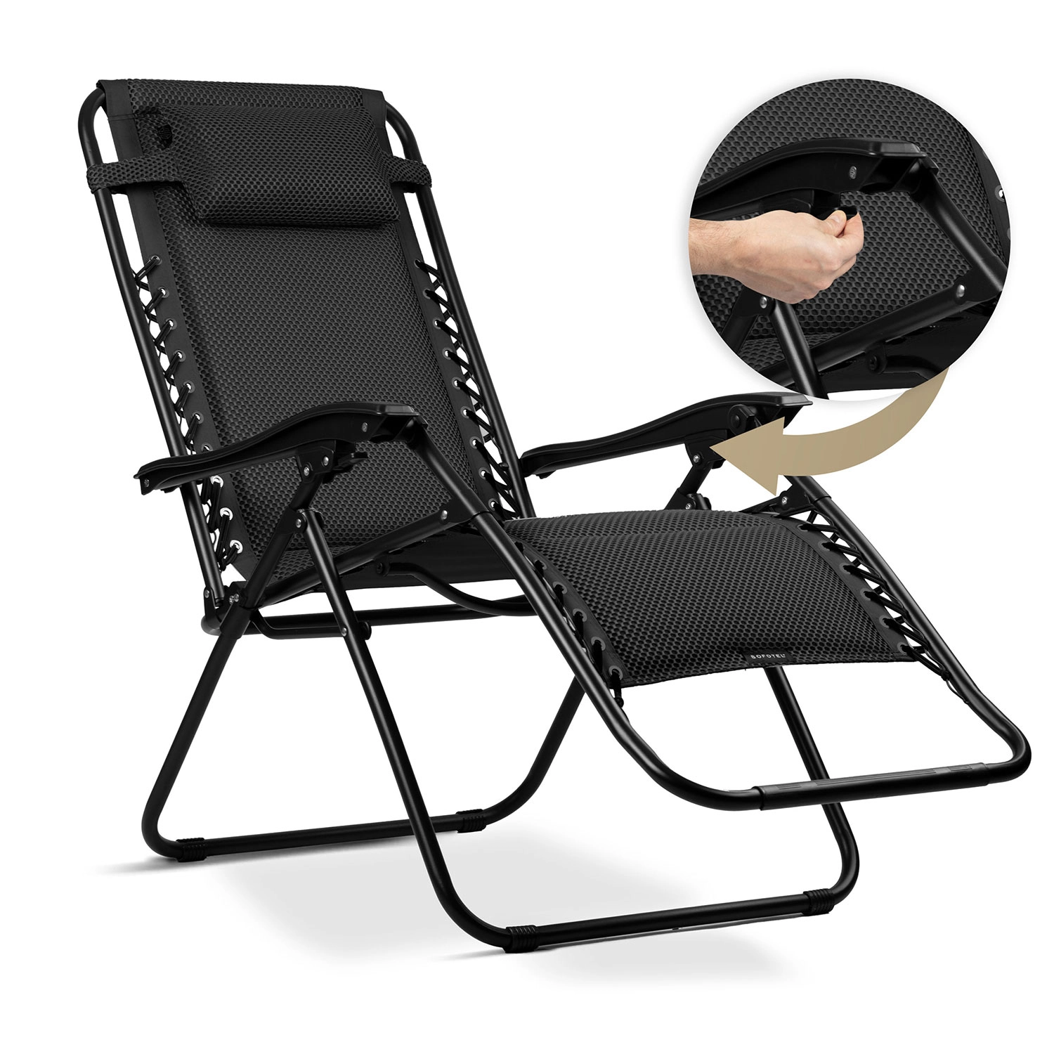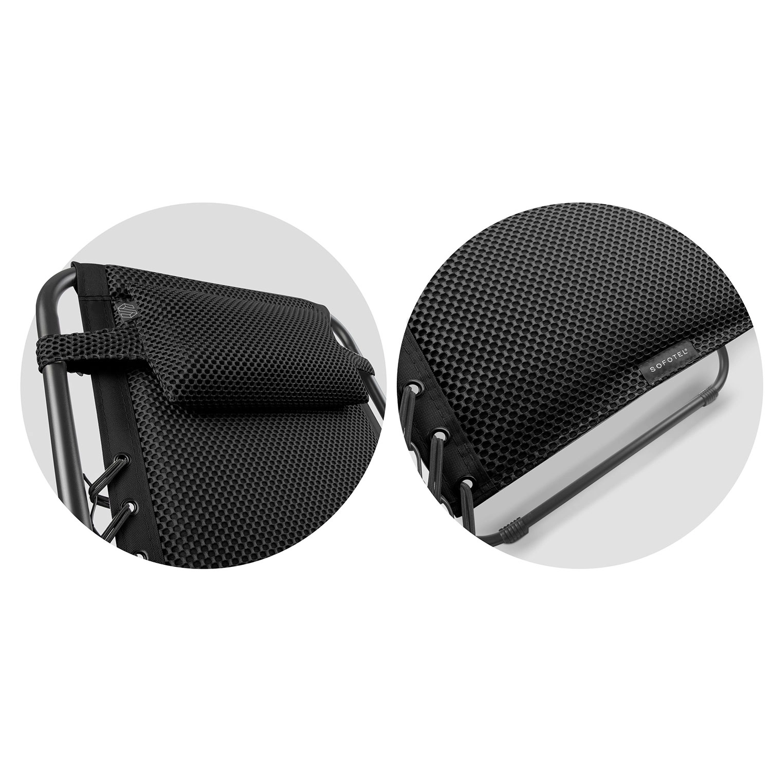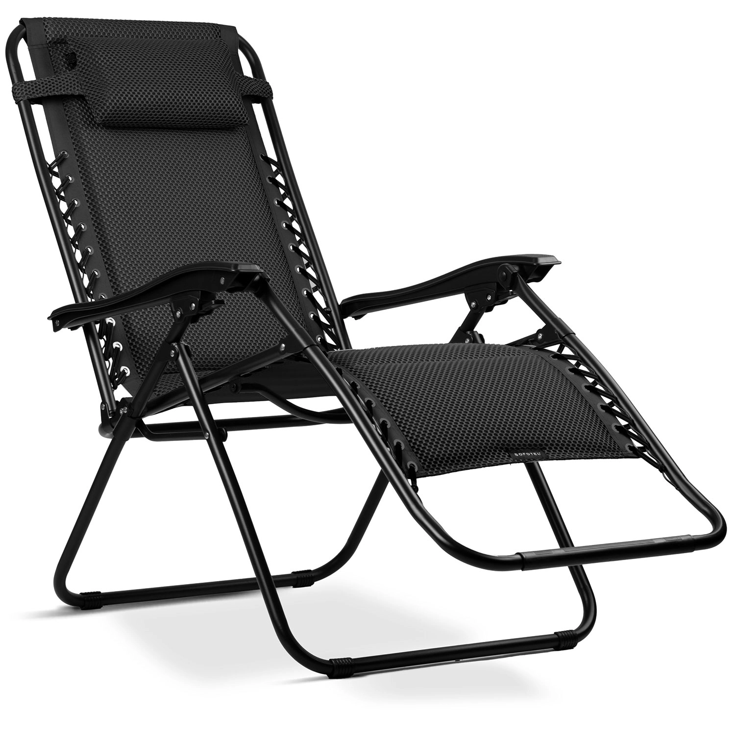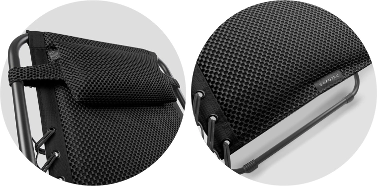 Geniet van ultieme ontspanning met de opvouwbare zwaartekrachtligstoel Sofotel ChillWell Soft in stijlvol zwart. De ergonomische constructie maakt vloeiende verstelling van de rugleuning mogelijk tot bijna gewichtloze positie voor maximale ontspanning. Een zacht kussen ondersteunt hoofd en nek, terwijl de innovatieve 3D FoamGrid™ zorgt voor uitzonderlijke zachtheid, ademend vermogen en snel drogen. Het stevige stalen frame met poedercoating garandeert stabiliteit en een lange levensduur thuis op het terras, balkon en onderweg.