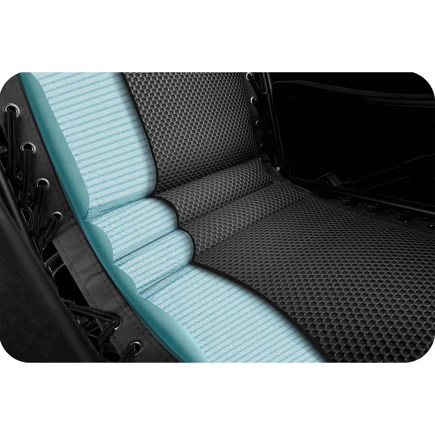 De innovatieve stof met schuimkern biedt uitzonderlijke zachtheid, steun en ventilatie. Droogt snel, is UV-bestendig en voelt prettig aan, zelfs op warme dagen.