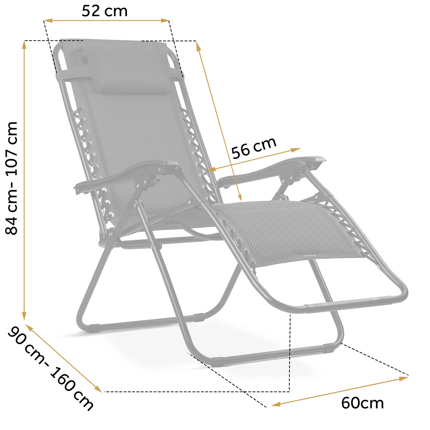 Dankzij de traploze positie-vergrendeling stel je de zit- of lighoek moeiteloos exact naar wens in. Het verstelbare kussen biedt ondersteuning precies waar je die nodig hebt. De duurzame stalen constructie met poedercoating is stabiel, robuust en klaar voor veelvuldig buitengebruik.
