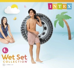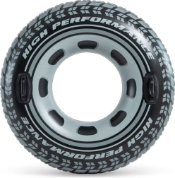 Stijlvolle opblaasbare band in autobandvorm biedt heerlijk waterplezier voor kinderen en volwassenen. Dankzij twee stevige handgrepen behoud je gemakkelijk je balans. Gemaakt van duurzaam PVC van het merk INTEX, met een diameter van 114 cm en een draagvermogen tot 100 kg.
