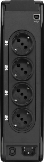 - 8× Schuko (4× met batterij‑back‑up, 4× alleen met overspanningsbeveiliging)
