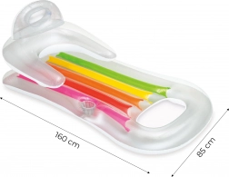 Het opblaasbare ligbed van INTEX combineert stijl, comfort en duurzaamheid. Het transparante design met kleurrijke segmenten fleurt elk zwembad op, terwijl de ergonomisch gevormde zachte rugleuning zorgeloos ontspannen mogelijk maakt. De praktische bekerhouder houdt je verfrissing altijd binnen handbereik.