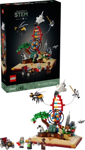 Interactieve functies brengen de opstelling tot leven: draai aan de schakelaar en het 3D-atoom rijst op terwijl de dubbele DNA-helix gaat draaien. Er zijn ook speelse details – Morsecode, Newtons appelboom, Carvers bedden, een spaceshuttle en een robotarm. De drie minifiguren – Marie Curie, Isaac Newton en George Washington Carver – nodigen uit tot het vertellen van verhalen die de wereld hebben veranderd.