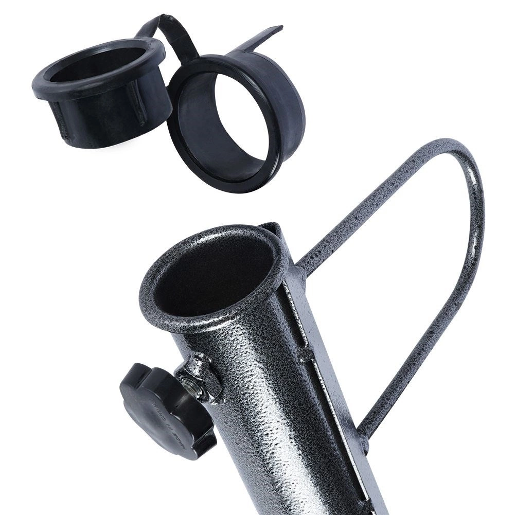 Robuuste insteekstandaard voor tuin- en strandparasols zorgt voor stabiele bevestiging in gras en zand. Metalen constructie in grijs, eenvoudige installatie dankzij de punt en adapters 25–35 mm voor verschillende buisdiameters. Ideale oplossing tegen omvallen bij wind.
