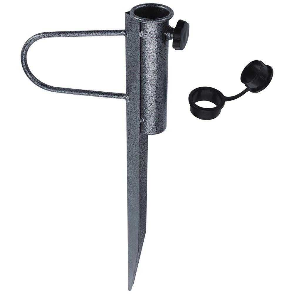 Praktische standaard voor snelle montage van uw parasol zonder voet. U hoeft hem alleen maar in de grond te steken en de zijkantschroef aan te draaien. De duurzame metalen uitvoering met oppervlakafwerking is geschikt voor tuin, terras en strand en biedt betrouwbare stabiliteit voor uw parasol.