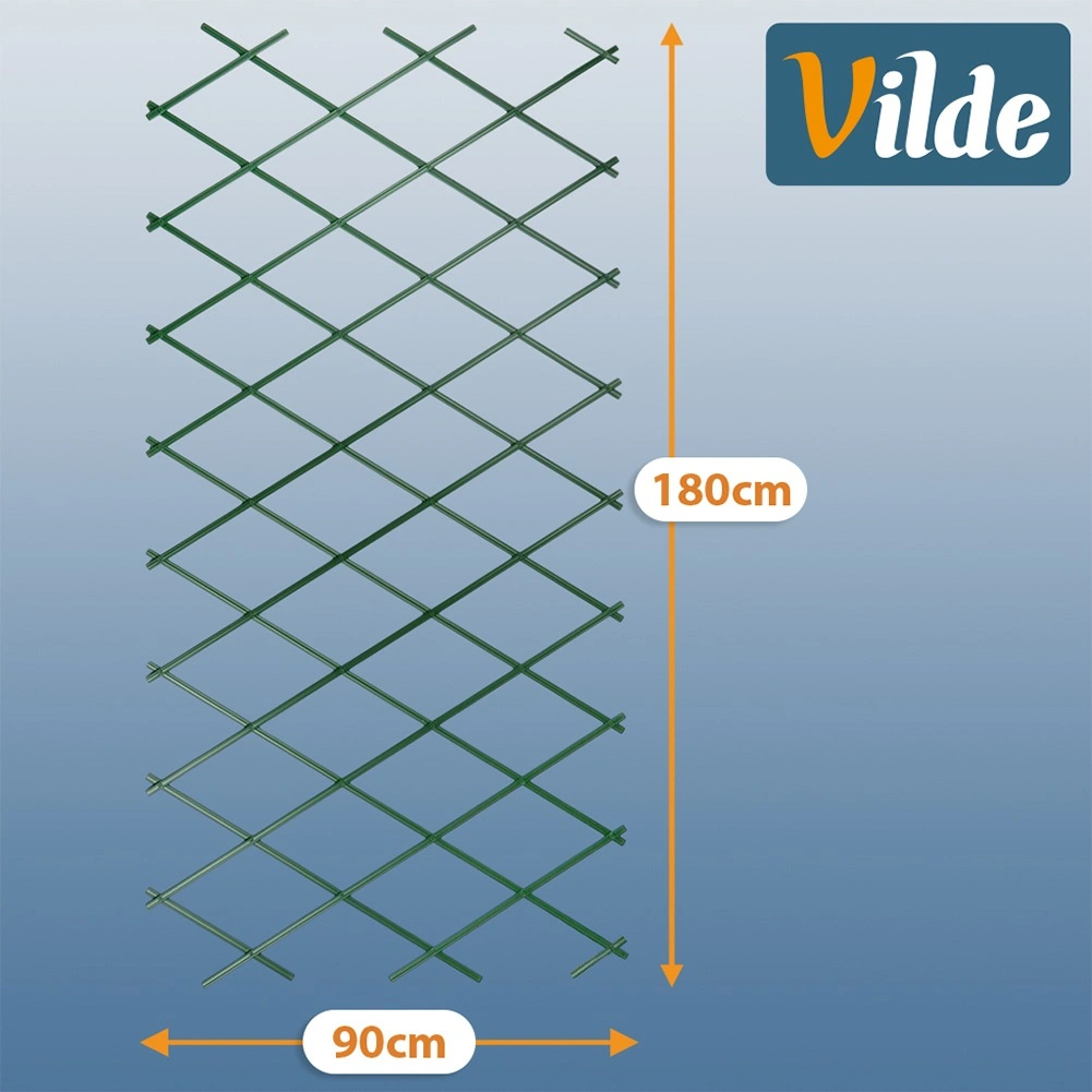 De installatie is snel en intuïtief – schuif het trellis eenvoudig uit tot het gewenste formaat en bevestig het aan hek of muur. Het klassieke ruit-/kruismotief zorgt voor voldoende hecht- en steunpunten voor ranken en scheuten.