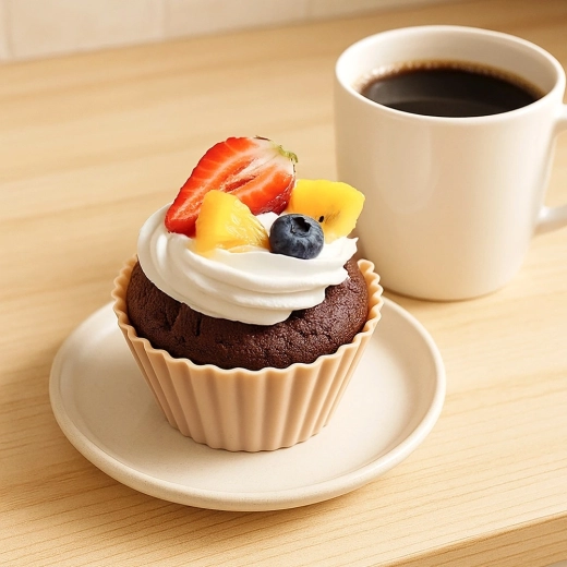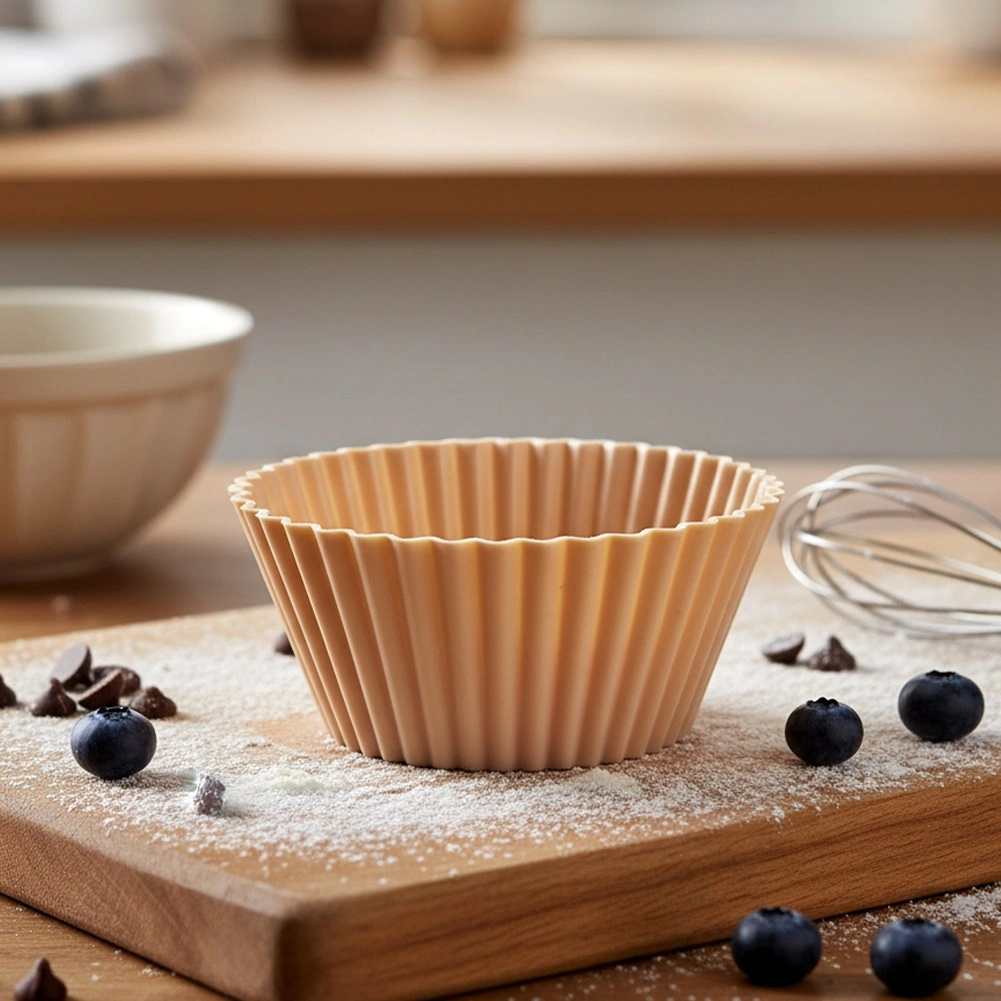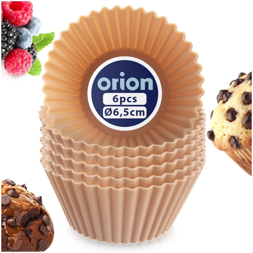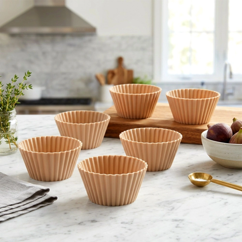 Praktische set van zes siliconen muffinvormpjes in een elegante beige kleur voor dagelijks bakken. Dankzij het flexibele materiaal plakt het beslag niet vast, kun je desserts gemakkelijk lossen en zijn de vormpjes herbruikbaar. Bestand tegen temperaturen van -40 °C tot +220 °C, dus geschikt voor oven, magnetron en vriezer. Vaatwasmachinebestendig en een milieuvriendelijk alternatief voor papieren cupjes.